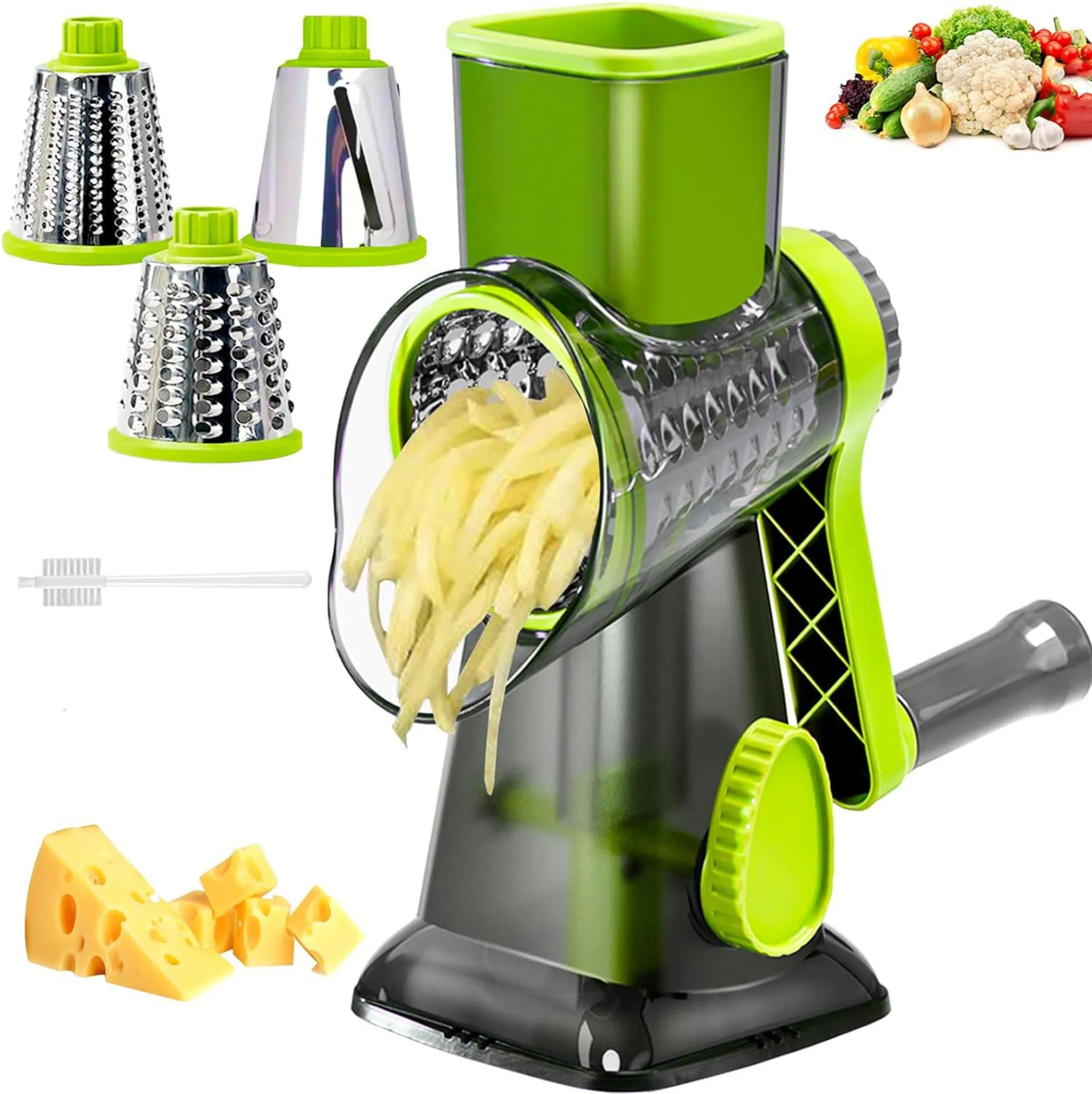 Schluss mit mühsamem Gemüseschneiden von Hand! Dieser multifunktionale Gemüseschneider ist dein neuer bester Freund in der Küche. Mit 5 austauschbaren Trommelklingen zauberst du im Handumdrehen perfekte Würfel, gleichmäßige Streifen, dünne Scheiben oder fein geriebene Zutaten. Egal ob Karotten, Gurken, Kartoffeln, Käse oder sogar Nüsse - dieser Hobel meistert alles mit Bravour. Der starke Saugfuß sorgt für einen sicheren Stand auf der Arbeitsfläche, sodass du mit beiden Händen arbeiten kannst. Aus robustem Edelstahl gefertigt, ist der Schneider nicht nur langlebig, sondern auch hygienisch. Der Sicherheitsdeckel schützt deine Hände vor den scharfen Klingen. Mit den kompakten Maßen von 28x15x9 cm und einem Gewicht von 850 g findet er in jeder Küche Platz. Ein kleiner Profi-Tipp: Einfach das Gemüse vor dem Schneiden leicht anfeuchten, dann gleitet es noch besser durch die Klingen. Perfekt für Salate, Gratins, Suppen oder einfach nur für gesunde Snacks. Mach dir die Küchenarbeit leichter und hol dir diesen praktischen Helfer!