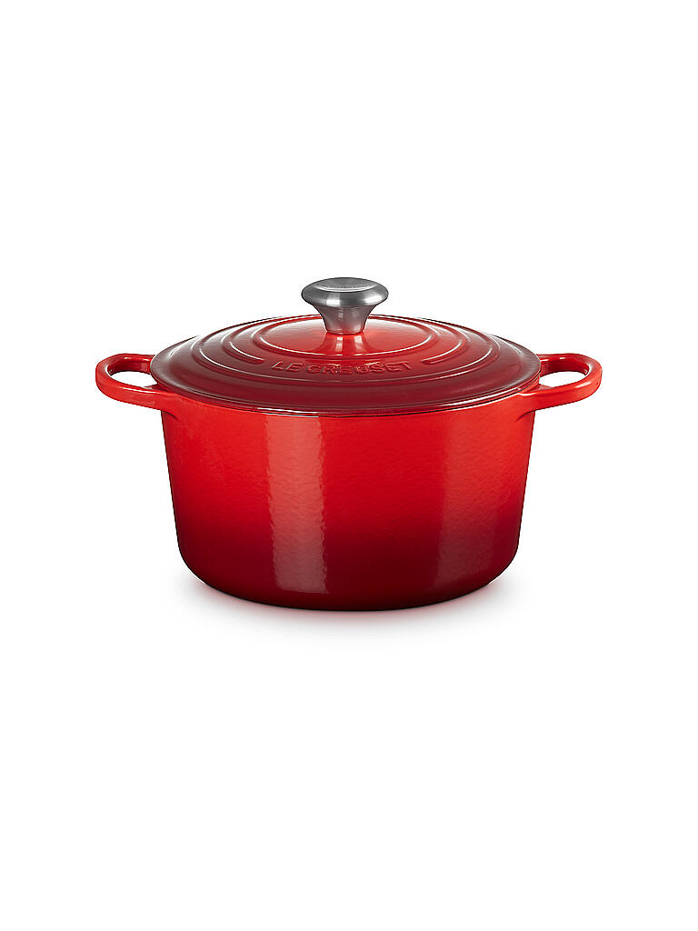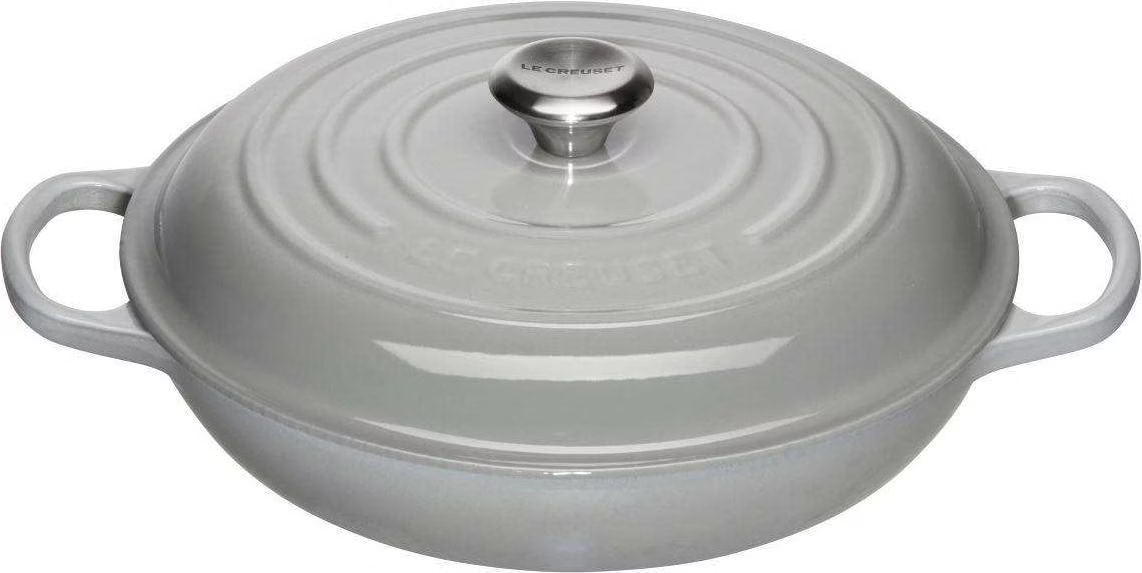 Wow, ein echter Le Creuset - der Mercedes unter den Töpfen! Dieser runde Schmortopf in Mist Grey ist einfach nur klasse. Aus Gusseisen, also hält der ein Leben lang (und wahrscheinlich noch länger). Mit 1,5 Liter Fassungsvermögen perfekt für 2-3 Personen oder wenn du mal was für den nächsten Tag vorkochen willst. Die Wärmeverteilung ist fantastisch - alles gart gleichmäßig durch. Ob Schmorbraten, Eintöpfe oder einfach nur Gemüse anbraten - damit wird jedes Gericht zum Highlight. Sieht dazu noch super edel aus - kann direkt vom Herd auf den Tisch. Ist zwar etwas schwerer als normale Töpfe, aber das ist es absolut wert. Ein Küchenklassiker, der einfach immer geht. Deine Enkel werden den Topf später mal erben - so stabil ist der verarbeitet!