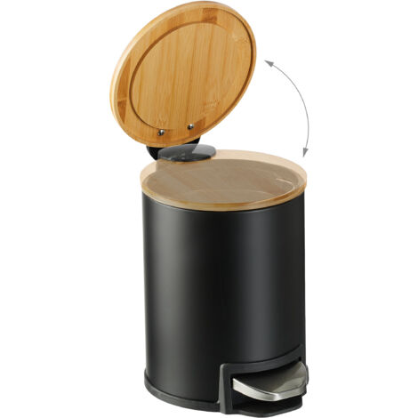 Der Relaxdays Kosmetikeimer ist einfach perfekt für dein Badezimmer! Mit seinem schicken Bambusdeckel und der matten schwarzen Oberfläche sieht er nicht nur gut aus, sondern ist auch super praktisch. Das 5-Liter-Volumen reicht vollkommen aus für Hygieneabfälle und der Inneneimer aus Kunststoff macht das Entleeren zum Kinderspiel. Besonders cool: Die Softclose-Funktion sorgt dafür, dass der Deckel ganz leise und sanft zufällt. Und mit dem Trittpedal kannst du den Eimer freihändig öffnen - mega hygienisch! Der Bambus ist übrigens feuchtigkeitsresistent und damit ideal für feuchte Räume wie Bad oder Küche. Maße: 26 x 20,5 x 25 cm, Material: Eisen, Bambus, Kunststoff. Inklusive 25 Müllbeuteln - so bist du direkt startklar!