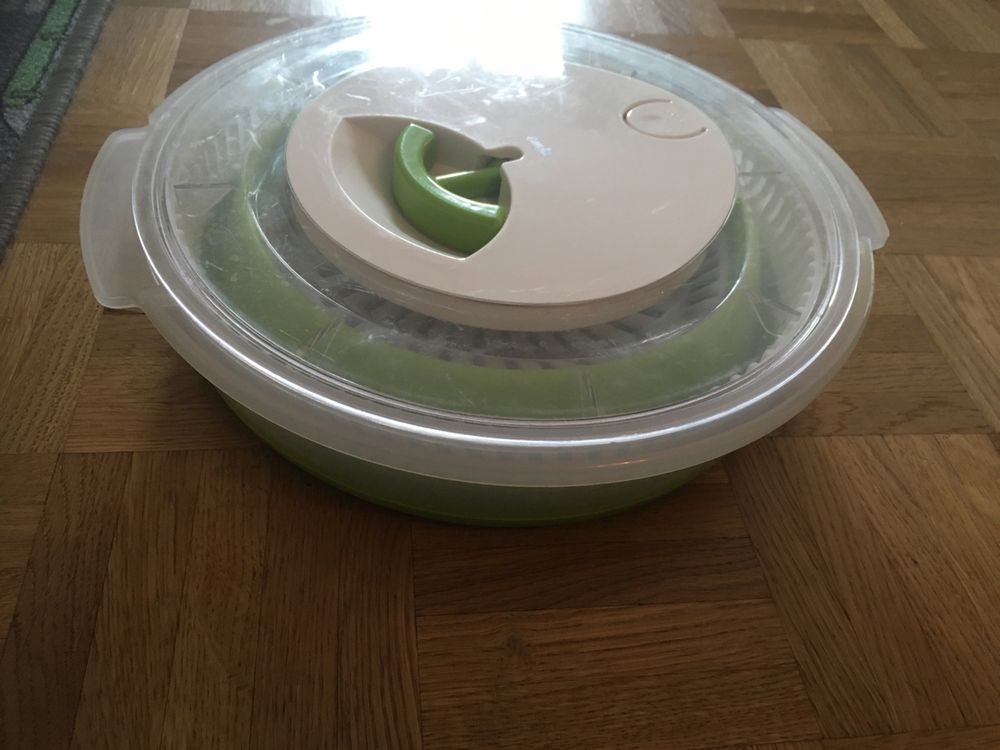 Salat machen war noch nie so praktisch! Diese kluge Salatschleuder lässt sich einfach zusammenfalten und spart damit mega viel Platz - perfekt für die Camping-Küche oder kleine Wohnungen. Mit 4,5 Liter Fassungsvolumen passt eine ganze Salatfamilie rein! Das coole Design: Sie besteht aus Sieb und Schüssel, die man auch einzeln nutzen kann. Das Sieb ist super zum Nudeln oder Gemüse abgießen. Der gummiert Boden sorgt für rutschfesten Stand, auch auf glatten Oberflächen. Im Set dabei: Zwei bio-abbaubare Spültücher aus 70% Zellulose und 30% Baumwolle - total umweltfreundlich! Einfach zusammenklappen und in irgendeine Ecke stopfen - wenn sie nicht gebraucht wird, nimmt sie kaum Platz weg. Die kräftige Schleuderkraft sorgt für knackige Salatblätter ohne lästiges Wasser. Ob für den nächsten Camping-Trip, Picknick oder einfach für die tägliche Küche - dieses Teil wird dein neuer Liebling!