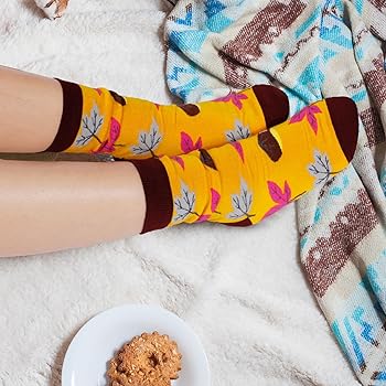 So gemütlich kann Herbst sein! Diese ThiCc Socken mit süßen Kürbis-, Eichhörnchen- und Ahornblatt-Motiven bringen Festtagsstimmung an deine Füße.