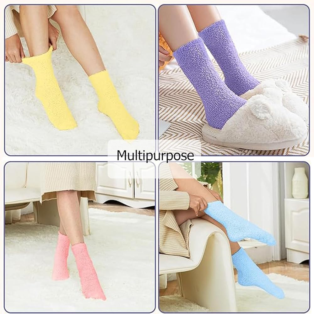 Wenn die Füße frieren, ist alles doof! Diese kuschelweichen Socken retten dich durch den Winter. 5 Paar in verschiedenen Farben, aus weichem Polyester mit etwas Elasthan für perfekten Sitz. Größe 35-41, passen also den meisten. Extra lang für mehr Wärme an der Wade, aber nicht einschnürend. Super als Hausschuhe, Schlafsocken oder für kalte Tage. Atmungsaktiv, damit die Füße nicht schwitzen. Und das Beste: Sie verlieren kaum Flaum, also bleibt dein Sofa sauber. Perfekt zum Verschenken oder einfach für dich - kuscheliger geht's kaum!