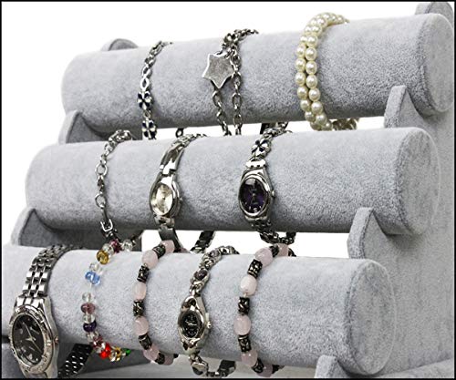 Eleganter Schmuckständer für deine Sammlung! Mit 5 abnehmbaren Rollen (Ø5cm) für Armbänder, Uhren und Ketten. Aus schwarzem Samt - sieht edel aus und schont deine Schmuckstücke. Maße: 37x27x39cm, Gewicht 2325g. Perfekt für Vitrinen, Verkaufsräume oder die eigene Sammlung. Präsentiere deinen Schmuck professionell und stylisch!