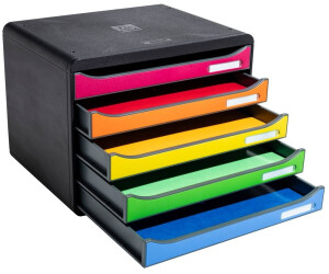 Diese Exacompta Ablagebox bringt Ordnung in dein Büro! Mit 5 praktischen Schubladen hast du alle deine DIN A4+ Dokumente, Prospekthüllen und Mappen perfekt organisiert. Die Maße von 38,7 x 28,4 x 21,8 cm passen super in untiefe Schränke oder Regale. Der einzigartige Stopp-Mechanismus sorgt für leichtes Öffnen und Schließen - keine klemmenden Schubladen mehr! Die Box ist stapelbar und hat rutschfeste Noppen an der Unterseite. In kobaltblau sieht sie zudem noch richtig stylisch aus. Und das Gütesiegel 'Blauer Engel' bestätigt die Umweltfreundlichkeit. Perfekt für mehr Platz auf dem Schreibtisch!