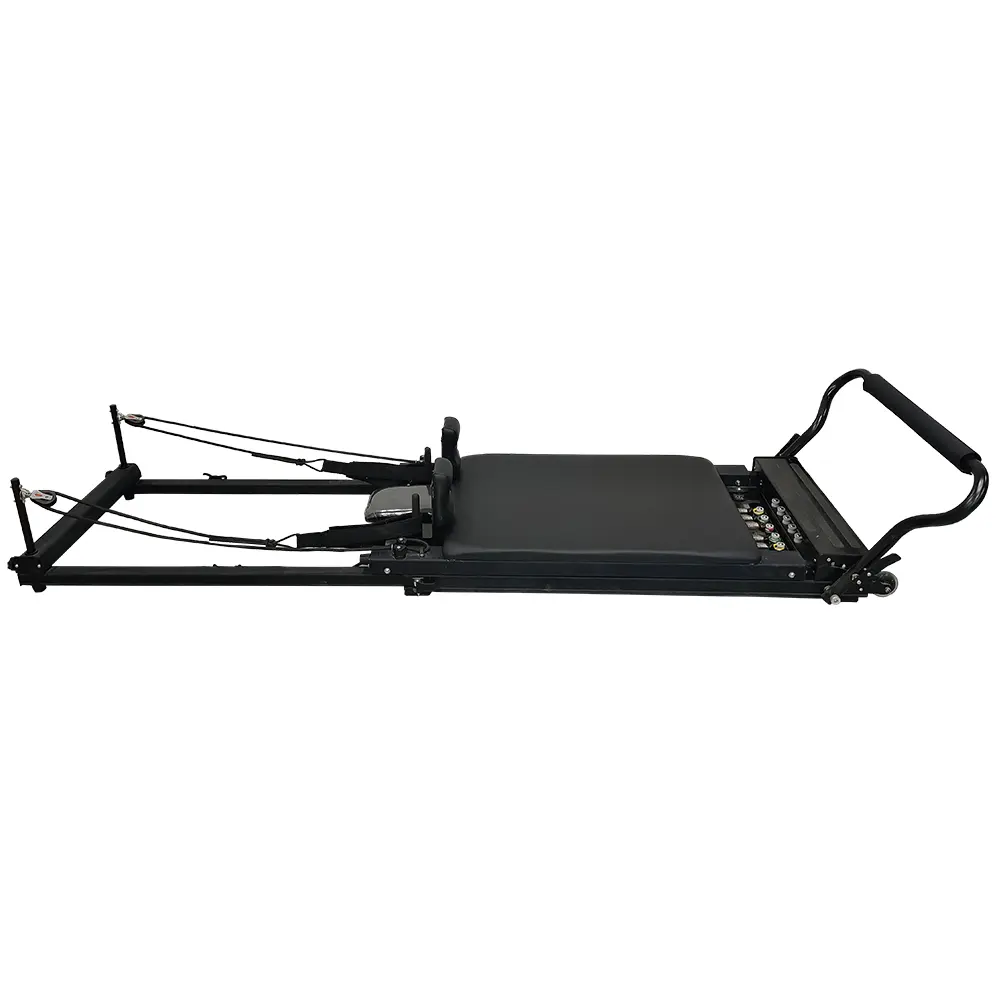 Wow, dieser FINDAMAZE Pilates Reformer ist echt praktisch! Stell dir vor, du hast ein komplettes Pilates-Studio in deinem Wohnzimmer - und das ohne viel Platz zu verbrauchen. Das Teil ist nämlich faltbar und super leicht zu verstauen.\n\nWas ich besonders cool finde: Es ist ein 5-in-1 Multitrack-System. Das bedeutet, du kannst wirklich alle Muskelgruppen trainieren - Bauch, Rücken, Beine, Po. Egal ob du Anfänger oder Profi bist, hier findest du die richtige Herausforderung.\n\nDie Technik ist top: Automatische Rückprall-Technologie und starke elastische Seile sorgen für einen kraftvollen Widerstand. So baust du mühelos Muskeln auf und verbesserst gleichzeitig deine Flexibilität und Balance.\n\nDas Design ist durchdacht: Rutschfeste, gummiert Griffe, dicke Polsterungen für Ellbogen und Knie, und Doppelreihenräder für sanfte Bewegungen. Kippt nicht um - also voll sicher!\n\nUnd hier noch die technischen Daten:\n- Aus strapazierfähigem ABS-Material\n- Faltbar und tragbar\n- Inklusive Handyhalterung\n- Lieferumfang: Liegestützgriffe, Skateboardgriffe, Widerstandsseile\n\nPerfekt für zu Hause, aber auch super fürs Büro oder Fitnessstudio. Einfach aufbauen und loslegen! Du wirst sehen, wie schnell du Fortschritte machst - und vor allem wie viel Spaß es macht.\n\nEhrlich gesagt, ich finde das eine der besten Investitionen für deine Fitness. Keine Ausreden mehr - mit diesem Teil kannst du wirklich überall trainieren. Und das Beste: Es sieht auch noch richtig stylisch aus!