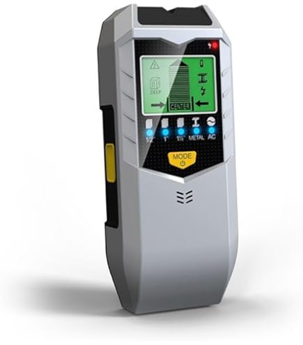 Der ultimative Helfer für jede Renovierung! Dieser Mcbazel Wandscanner ist ein 5-in-1 Multitalent: Er findet Holzständer (13, 25, 38 mm Tiefe), Metall (bis 60 mm) und stromführende Kabel (bis 51 mm). Mit hintergrundbeleuchtetem LCD-Display und akustischem Alarm - super einfach abzulesen, auch bei schlechtem Licht. Kabellos und leicht - perfekt für unterwegs. Bis zu 6 Stunden Akkulaufzeit - hält auch bei großen Projekten durch. Die integrierte Kabelschutzwarnung warnt dich vor gefährlichen Stromleitungen - Sicherheit first! Ob für Profis oder Heimwerker - mit diesem Teil bohrst du nie wieder blind in die Wand. Kompakt, aber leistungsstark - dein bester Freund bei jedem Bohrprojekt!