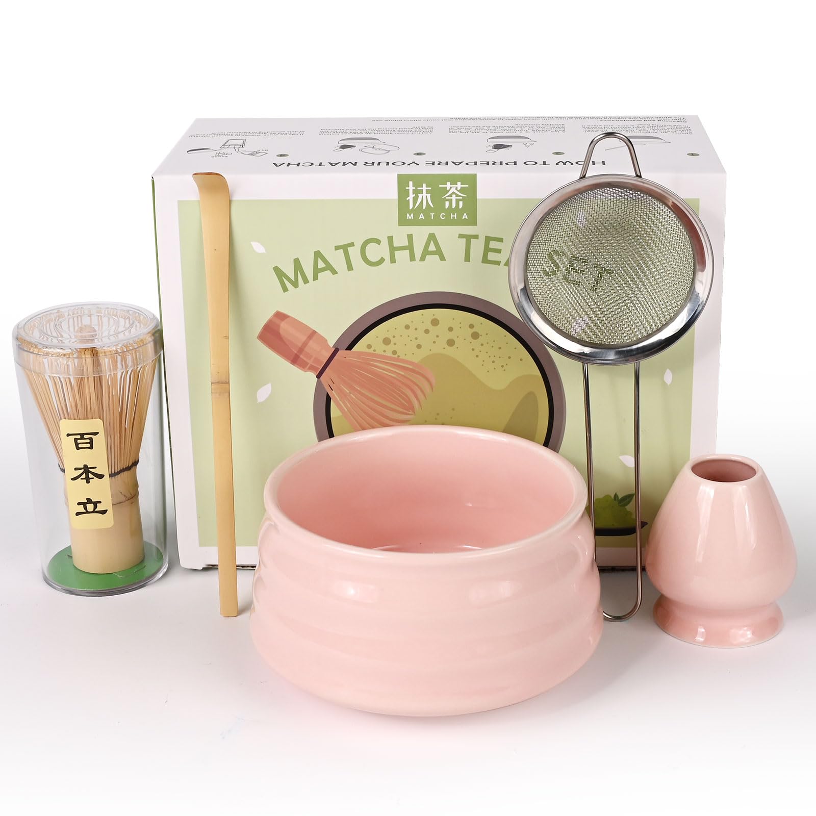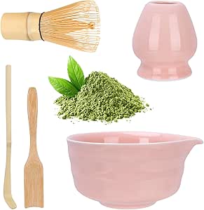 Matcha-Tee wie ein Profi! Dieses komplett Set hat alles was du für die traditionelle Zubereitung brauchst. Inklusive Matcha-Besen (Chasen), schicker Schale mit Ausguss, Filtersieb und Dosierlöffel. Alles in hübschem Rosa - sieht nicht nur gut aus, sondern funktioniert auch perfekt. Das Sieb sorgt für klumpenfreies Pulver, der Besen für cremigen Schaum. Ideal für Matcha-Neulinge die authentischen japanischen Grüntee genießen wollen. Einfach, stylisch und praktisch - so macht Matcha richtig Spaß!
