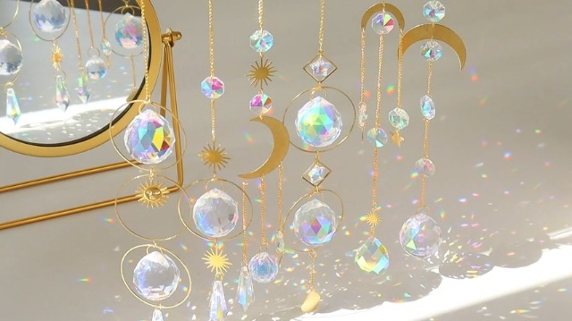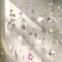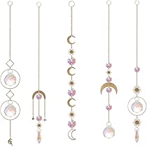 Oh, dieses Sonnenfänger-Set ist ja absolut magisch! 5 verschiedene Anhänger mit Sonne, Mond und Stern-Motiven - jedes ca. 40cm lang. Aus hochwertig geschliffenem weißem Kristall und Metallketten. Wenn die Sonne drauf scheint, werfen sie wunderschöne Regenbogenlichter und erzeugen sanfte Klänge im Wind. Total wetterfest für draußen geeignet - perfekt für Garten, Balkon oder Terrasse. Aber auch innen am Fenster sieht es traumhaft aus. Im Boho-Stil mit esoterischem Flair - richtig mystisch. Ideal als Geschenk mit der Bedeutung 'Licht ins Leben bringen'. Ob für Geburtstage, Hochzeiten oder einfach so - damit machst du immer eine gute Figur. Einfach aufhängen und den Zauber genießen! Damit wird dein Zuhause sofort gemütlicher und magischer.