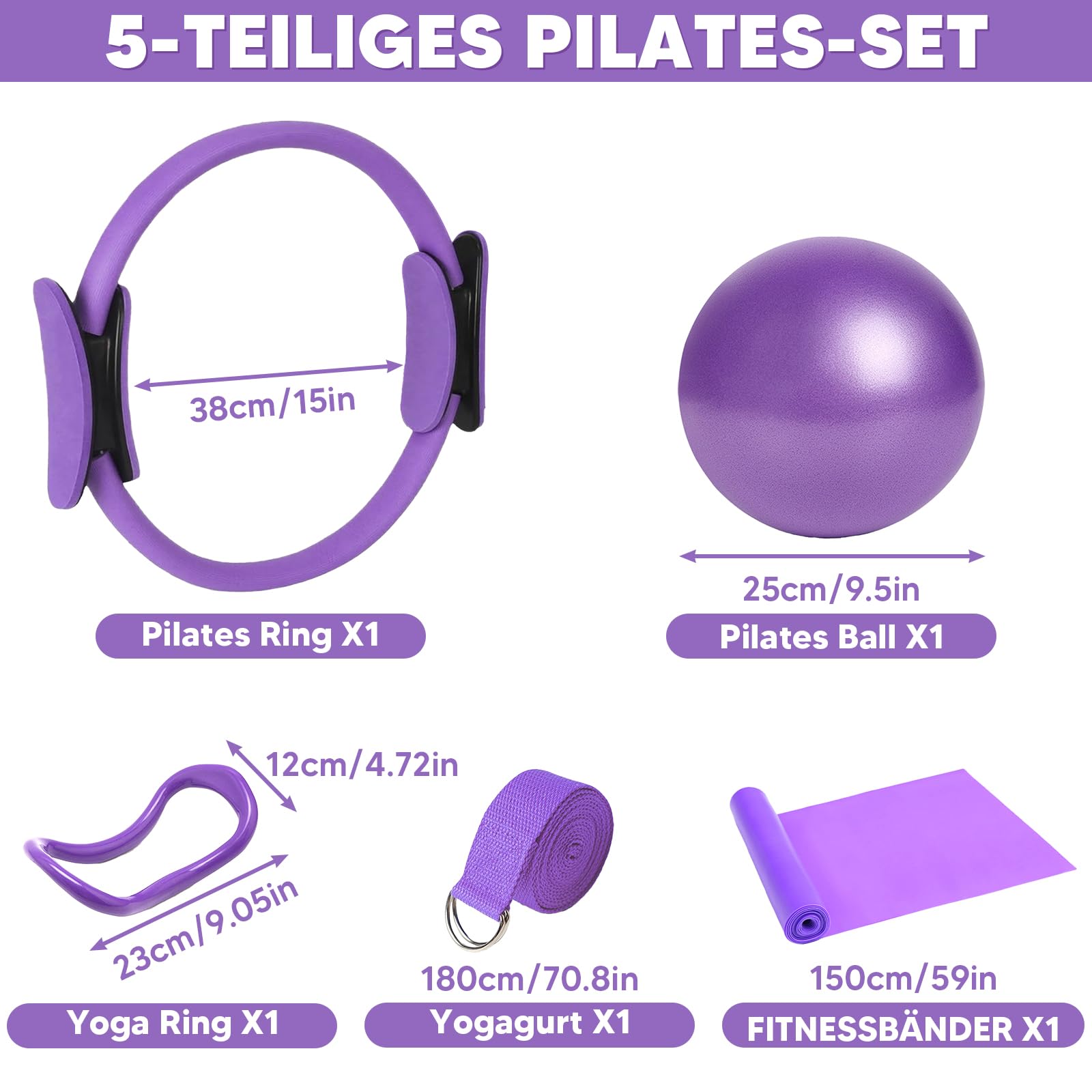 Dein komplettes Home-Gym in einem Set! Dieses 5-teilige Pilates Set bietet dir alles, was du für ein effektives Training zu Hause brauchst. Enthalten sind: 1 Pilates Ring, 1 Weizenrohrball (ca. 25cm), 1 Yoga-Stretch-Hilfsgurt (183cm), 1 Yoga-Widerstandsband und 1 Yoga-Ring (22x12cm). Perfekt um deine Muskelleistung zu verbessern, Flexibilität zu steigern und die Körperkontrolle zu optimieren. Das Set eignet sich super für Training von Armen, Rücken, Oberschenkeln, Waden und Bauchmuskeln. Aus robusten Materialien gefertigt, ist es besonders langlebig. Dank des tragbaren Designs kannst du es überall hin mitnehmen - ob im Wohnzimmer, Hotelzimmer oder im Garten. Ideal für Anfänger und Fortgeschrittene gleichermaßen. Ein fantastisches Geschenk für Fitness-Begeisterte, das Balance und Widerstandstraining optimal kombiniert. Starte noch heute dein Pilates-Abenteuer!