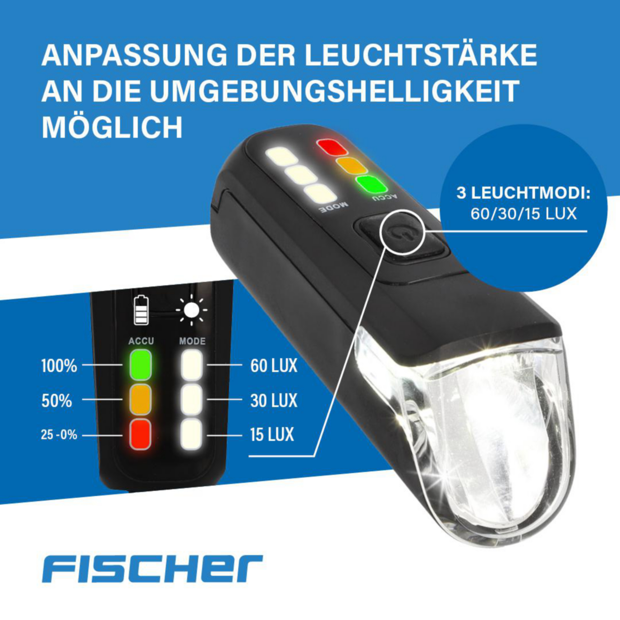 • Fischer Fahrrad Beleuchtung Set - 50/25/15 Lux LED Mit USB-Ladung StVZO