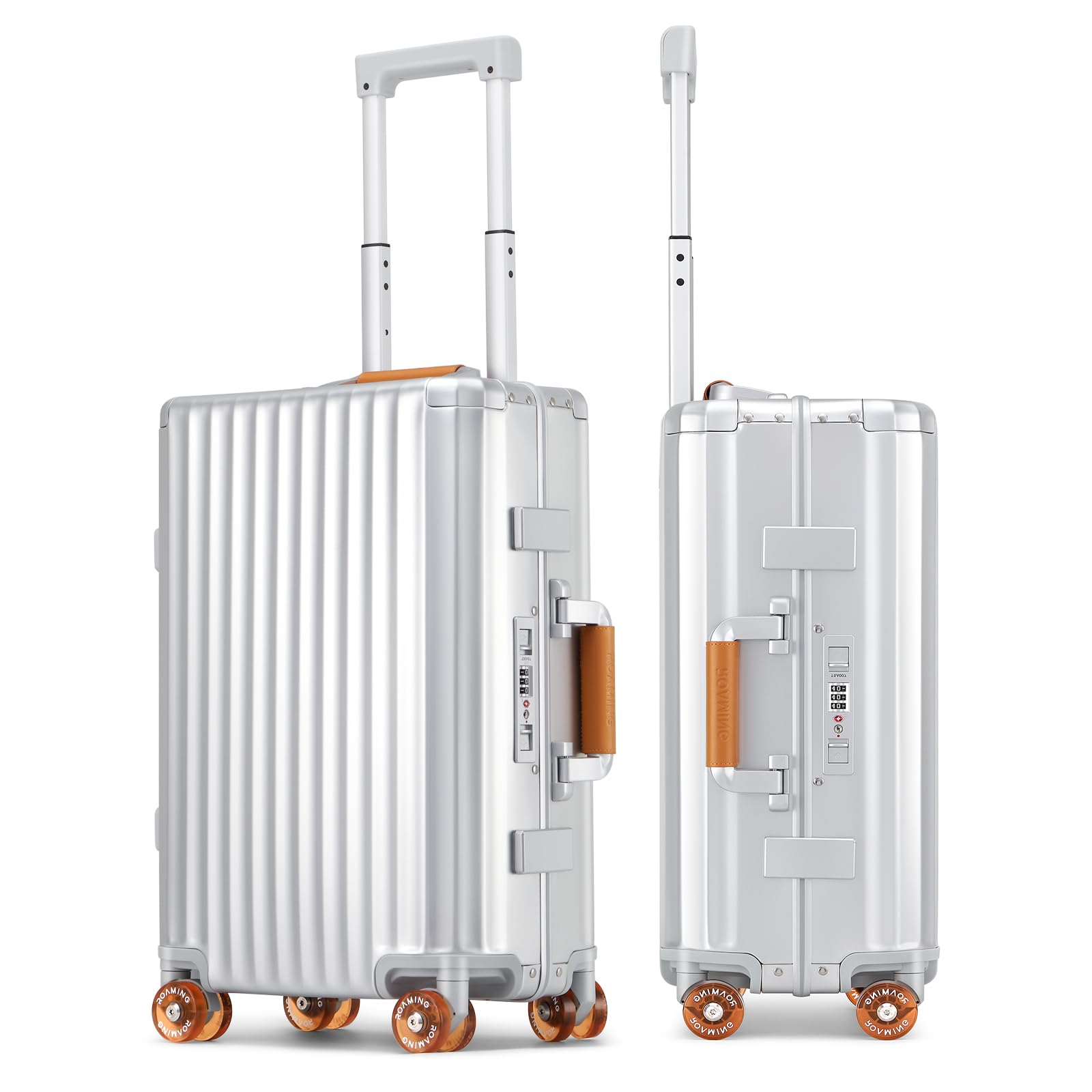 Frequent Flyer, dieses Handgepäck ist euer perfekter Reisebegleiter! Mit 50.8cm Größe (54.9x35.1x22.9cm) passt es in die Overhead-Fächer der meisten Airlines - zugelassen als Handgepäck. Die robuste Aluminium-Magnesium-Legierung hält auch grobem Gepäckhandling stand. Besonderheiten: Integriertes TSA-Schloss für sichere Reisen, vordere Laptoptasche für schnellen Zugriff (bis 39.6cm), praktischer Getränkehalter und USB-Anschluss zum Aufladen unterwegs. Die 360° Doppel-Spinner-Räder laufen super leicht über jeden Boden - ob Flughafen, Kopfsteinpflaster oder Strand. Das reißverschlusslose Design mit sicheren Riegeln vermeidet klemmende Reißverschlüsse. Zwei große Fächer mit Trocken-/Nass-Trennung bieten reichlich Platz für eure Habseligkeiten. Im Lieferumfang ist sogar eine kostenlose Schutzhülle enthalten, damit euer Koffer nach der Reise noch wie neu aussieht. Ob Geschäftsreise oder Wochenendtrip - mit diesem Koffer seid ihr perfekt ausgestattet. Einfach einpacken, abschließen und ab in den Urlaub! Damit wird Reisen zum echten Vergnügen.