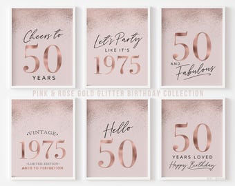 50. Geburtstag Deko Für Frauen - Roségold Rosa Glitter Mittelstück Tischdeko