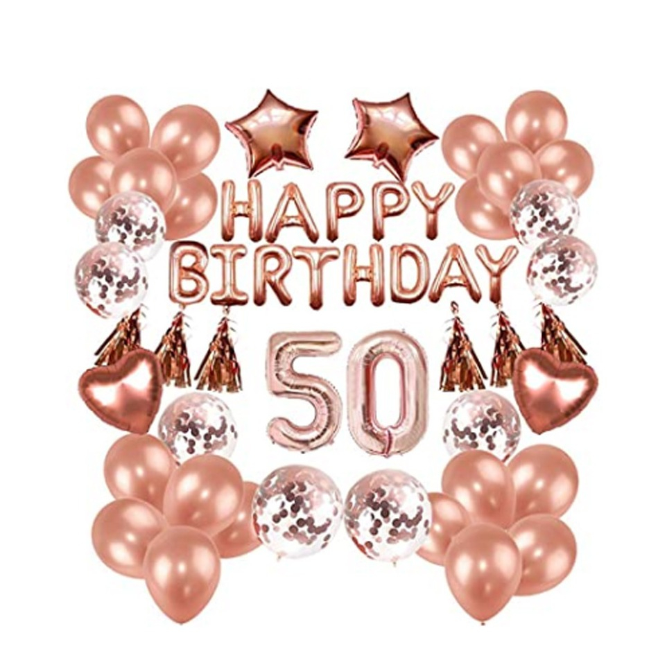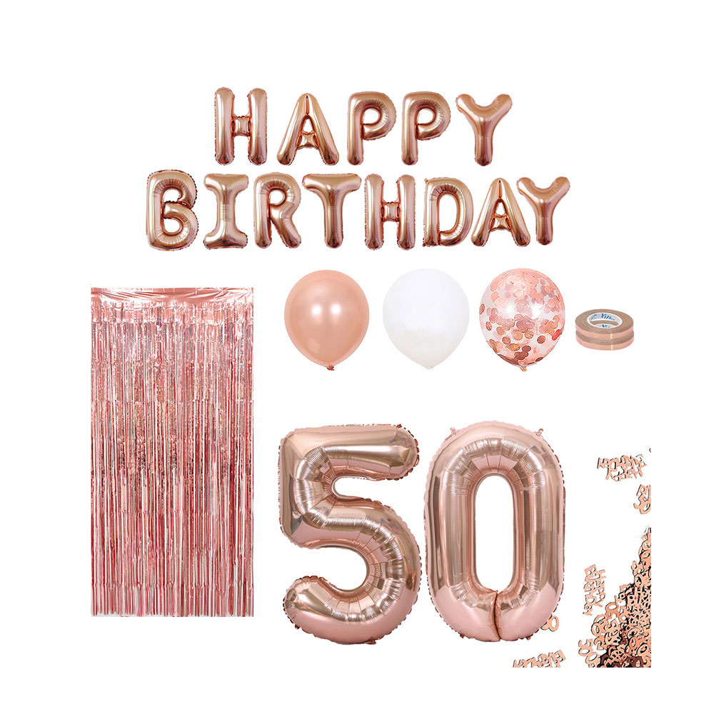 Mach den 50. Geburtstag zu einem unvergesslichen Fest! Dieses Roségold-Deko-Set verwandelt jeden Raum in eine Partyzone.