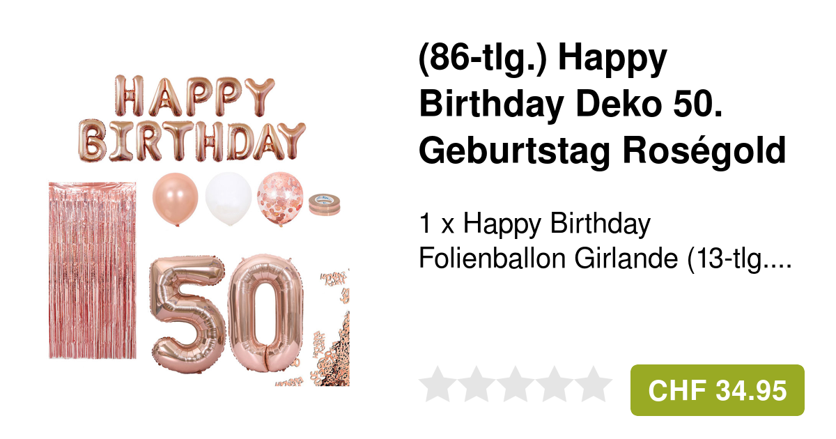 Inhalt: 1x \Happy Birthday\ Girlande, 1x \50\ Girlande, 6x Spiral-Luftschlangen - komplett und sofort einsatzbereit.