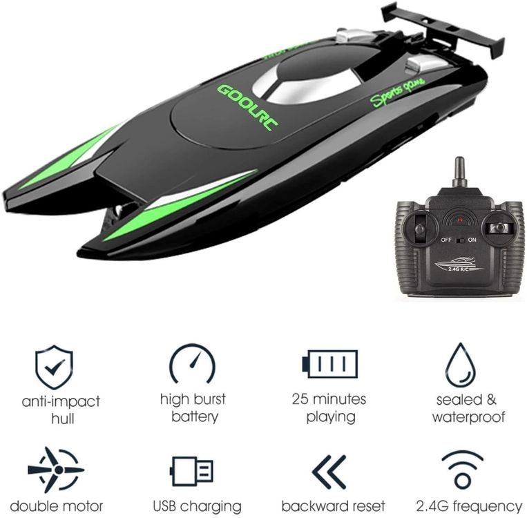 Alter, dieses RC-Boot von Harilla ist einfach der Wahnsinn! Satte 50 km/h schnell - da kommen andere Boote nicht mit. Mit starkem Doppelmotor und 2,4 GHz Fernsteuerung, also keine Störungen von anderen Geräten. Die integrierten Lichter sind perfekt für Nachtfahrten - sieht mega cool aus auf dem Wasser! Voll wasserdicht durch die versiegelte Bauweise, also keine Angst vor Spritzern. 30 Minuten Laufzeit sind auch echt respektabel. Die Fernsteuerung hat ne Reichweite von 80 Metern - mehr als genug für coole Manöver. Maße: 32,5 cm, also schön handlich aber trotzdem schnell. Perfekt für Teich, See oder Schwimmbad. Aber Achtung: Nicht für kleine Kinder geeignet! Für Jugendliche ab 6 und Erwachsene aber ein absoluter Spaß-Garant. Suchst du nach Action auf dem Wasser? Dieses Boot liefert sie dir! Einfach aufladen und los geht der Spaß!