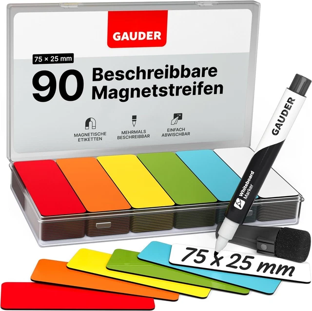 Hey, diese Magnetschilder sind ja mal mega praktisch! Du kriegst 50 Stück in Weiß, jeweils 2x8cm groß, und kannst sie einfach mit nem Whiteboard-Marker beschriften. Und wenn du was ändern willst, wischst du es einfach ab und schreibst neu drauf - total flexibel also! Die Magnetfolie ist richtig stark, hält super auf metallischen Oberflächen wie Regalen, Whiteboards oder Kühlschränken. Perfekt für die Organisation im Büro, in der Werkstatt oder im Lager. Du kannst damit Regale beschriften, Pläne erstellen oder einfach nur Notizen am Kühlschrank hinterlassen. Die PET-Oberfläche ist robust und langlebig, und weil die Magnetisierung anisotrop ist, haften die Dinger besser als normale Magnetfolien. Ob für zu Hause oder im Betrieb - mit diesen Magnetschildern behältst du immer den Überblick. Einfach beschriften, aufkleben und bei Bedarf wieder ändern. So einfach kann Organisation sein!