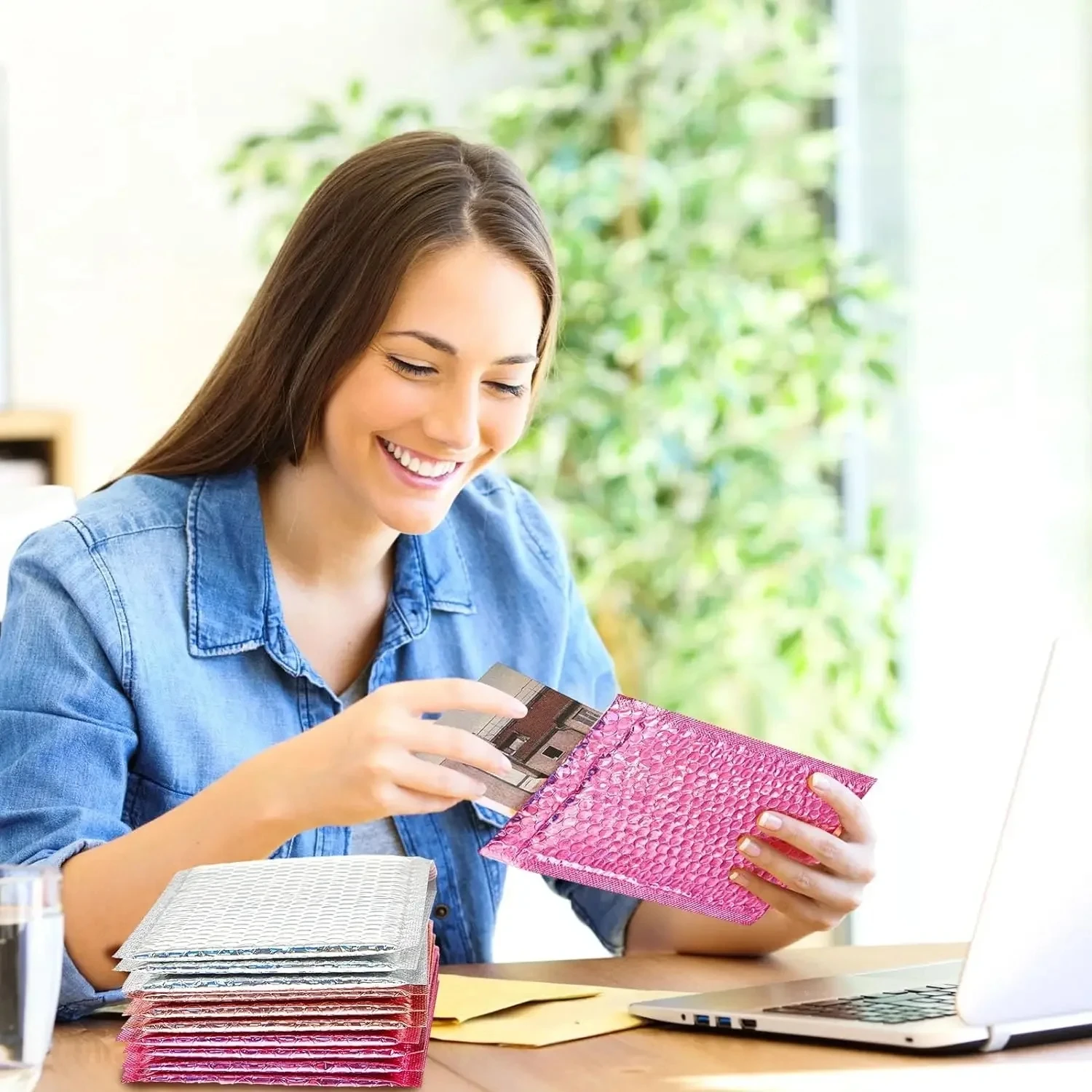 Perfekt für deinen Online-Shop oder wenn du oft Pakete verschickst! Diese 50 gepolsterten Versandtaschen in verschiedenen Größen (15x10cm, 12x6cm, 22x10cm) schützen deine Waren sicher. Aus reißfestem PE-Material mit starker Selbstklebe-Verschlusslasche. Deine Artikel fallen nicht heraus und bleiben vor Stößen geschützt. Ideal für Schmuck, Accessoires, Socken, Handarbeiten, Karten und andere kleine nicht-brechbare Gegenstände. Die glatte Oberfläche ist super zum Beschriften. Spart Porto im Vergleich zu Kartons! Ob für eBay, Etsy oder private Sendungen - diese Taschen machen das Verpacken zum Kinderspiel. Deine Kunden erhalten ihre Bestellungen sicher und ansehnlich verpackt. Ein Muss für jeden, der regelmäßig paketiert!