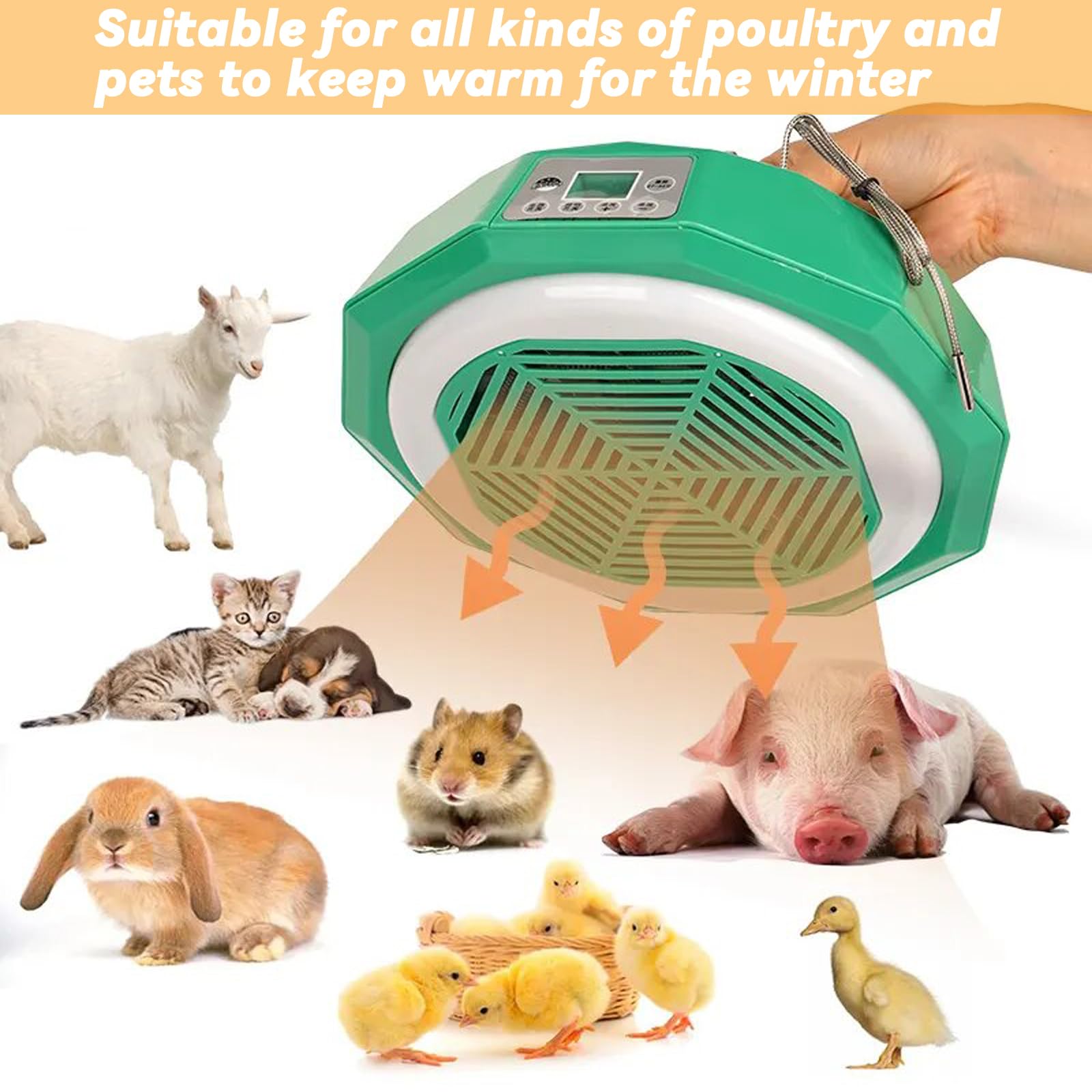 Perfekte Wärme für deine Küken! Diese 500W Wärmeplatte mit intelligentem Thermostat sorgt für ideale Temperaturen im Hühnerstall. Automatische Temperaturregelung bläst warme oder kalte Luft je nach Einstellung. Höhenverstellbar für unterschiedliche Tiergrößen, Heizfläche bis zu 3 Meter. Inklusive Fernbedienung für bequeme Bedienung bis 10 Meter Entfernung. Feuerfester Kunststoff und Überhitzungsschutz für maximale Sicherheit. Ideal für Küken, Hühner, Enten und andere Kleintiere. Mach deine Tierhaltung professionell und tierfreundlich!