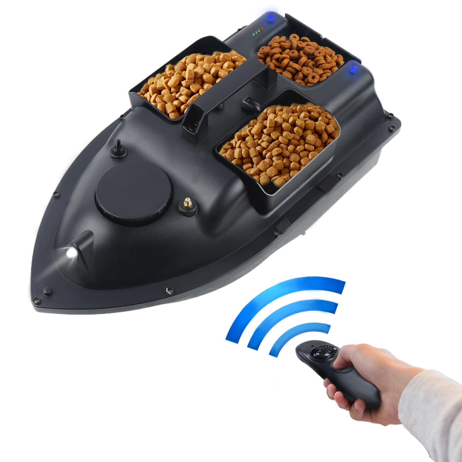 Modernes Angeln mal anders! Dieses Köderboot bringt deinen Köder genau dorthin, wo die Fische sind - bis zu 500m entfernt! Mit 2kg Ladung kannst du reichlich Futter transportieren. Das coole Dreiblatt-Propeller-Design ist effizienter als normale Propeller und die Leitbleche verhindern, dass sich Wasserpflanzen verfangen. Die Cruise-Control-Taste hält den Kurs auch bei Strömung perfekt bei. Für Nachtangler super: Das LED-Licht hilft dir, das Boot immer im Blick zu behalten. Mit 50x25x17cm ist es handlich aber stabil. Die 5200mAh Batterie hält bis zu 120 Minuten. Einfach per Fernbedienung steuern - vorwärts, rückwärts, links und rechts. Perfekt für Seen, Flüsse und seichtes Wasser. Revolutioniere dein Angel-Erlebnis!