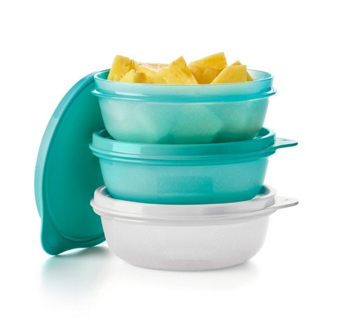 Frühstücks-Fans, hier kommt eure neue Lieblingsschüssel! Die Tupperware Sommer Drops Schüssel mit 500ml Fassungsvermögen ist perfekt für Overnight Oats, Chia-Pudding oder Meal Prep. Der auslaufsichere Deckel hält alles frisch und sicher - ideal für unterwegs. Einfach aufhängen und platzsparend verstauen. Die mikrowellengeeignete Schüssel (Deckel vorher abnehmen!) wärmt dein Essen schnell auf. Mit 16cm Durchmesser und 5cm Höhe passt sie in jede Tasche. Das pastellgrüne Design sieht super stylisch aus. Aus hochwertigem, langlebigem Material - Tupperware Qualität halt! Perfekt für Büro, Schule oder Picknick. Mach dein Frühstück zur Lieblingsmahlzeit!