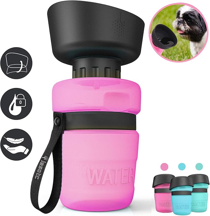 Boah, diese Hunde-Trinkflasche ist ja genial für unterwegs! Mit 500ml Fassungsvermögen hat dein Hund immer genug Wasser. Aus sicherem Silikon und PET, ohne Metallteile die rosten können. Der Karabiner zum Befestigen an Rucksack oder Gürtel ist super praktisch. Einfach Deckel aufklappen, Wasser ablassen und dein Hund kann trinken. Die O-förmige Tränke benetzt das Maul nicht. Auslaufsicher durch doppelte Dichtung - keine nassen Taschen mehr! Perfekt für Spaziergänge, Parkbesuche oder Reisen.