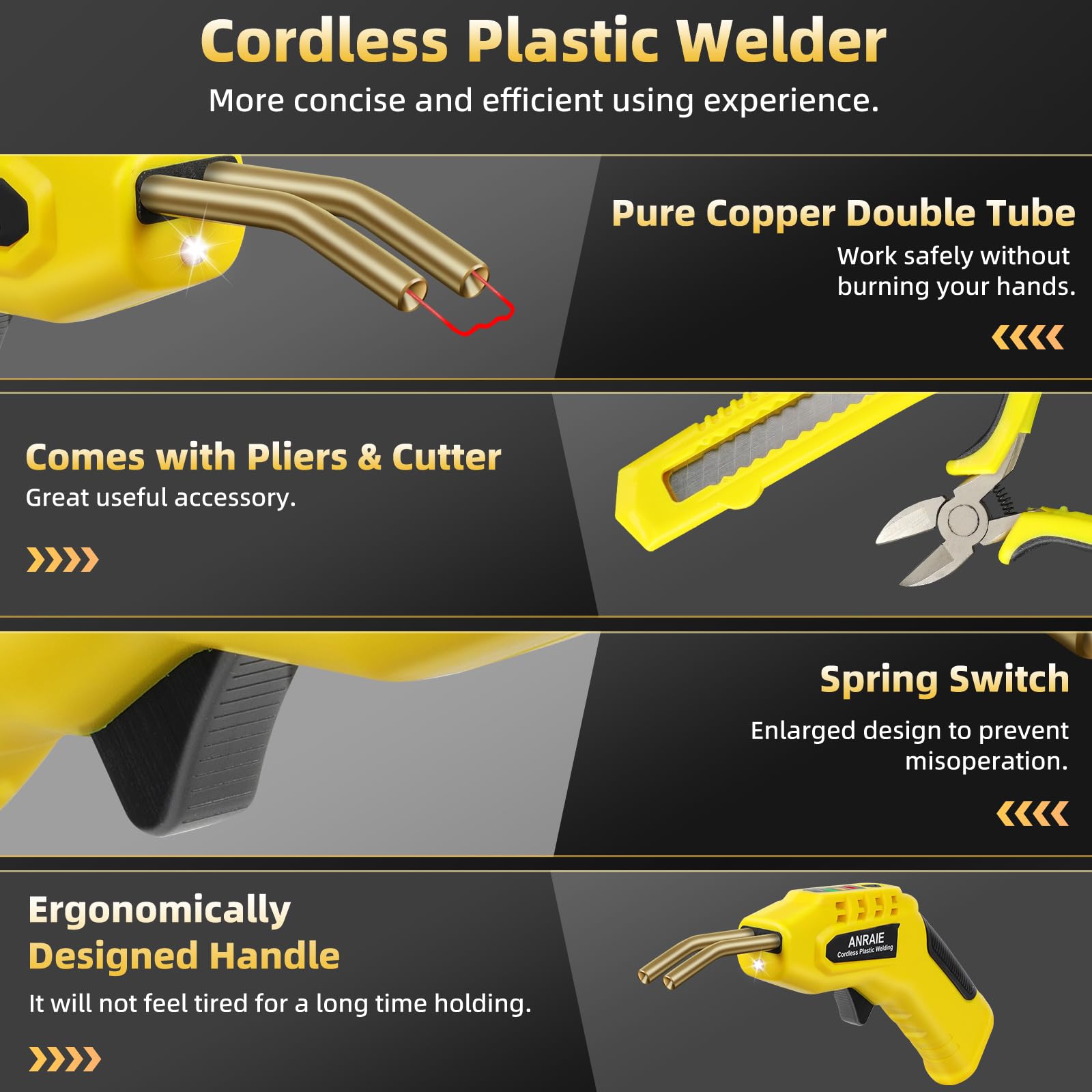 Hey, dieses Kunststoff-Schweißgerät ist ein absoluter Game-Changer für jede Werkstatt! Mit satten 50W Leistung und bis zu 500°C heizt es sich blitzschnell in nur 3-4 Sekunden auf. Perfekt für alle, die Kunststoffe wie PE, PP, PA, PB oder PVC reparieren wollen.