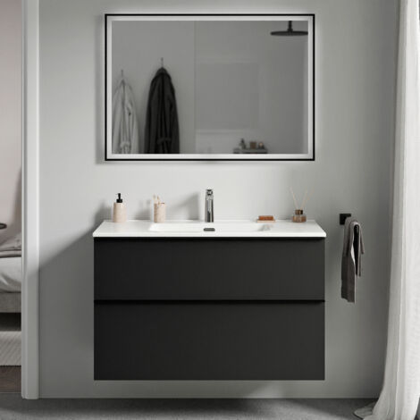 BERNSTEIN BELDIVO Badmöbelset 50cm - Waschtisch Mit Duravit Waschbecken Seidengrau
