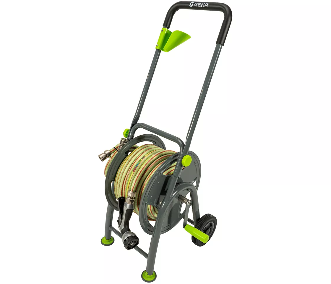 Endlich Ordnung im Garten! Dieser grüne Schlauchwagen nimmt bis zu 50m 1/2 Zoll Schlauch auf und sieht dabei noch stylisch aus. Mit praktischer Kurbel für einfaches Auf- und Abrollen. Die zwei robusten Räder machen ihn super mobil - einfach zum nächsten Wasseranschluss schieben. Aus Kunststoff und Edelstahl für lange Haltbarkeit. Niedriger Schwerpunkt verhindert Umkippen. Einfache Montage ohne Werkzeug. Perfekt für große Gärten, Rasenflächen oder Terrassen. Schützt deine Schläuche vor Witterung und Beschädigung. Mach deine Gartenarbeit entspannter und organisiert!