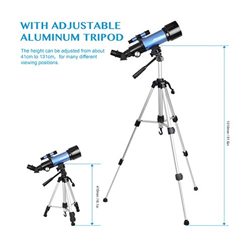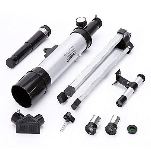 Hey, willst du die Sterne entdecken? Dieses MOZMY Teleskop ist perfekt für Astronomie-Anfänger! Mit 50mm Öffnung und 360mm Brennweite siehst du den Mond, Saturnringe und vieles mehr. Komplett mit verstellbarem Stativ, 2 Okularen (H20mm und H6mm), 3x Barlow Linse und Mondfilter. Einfach aufzubauen, auch für Kinder geeignet. Maximale Vergrößerung bis 90-fach - ideal für den ersten Blick ins All. Ob im Garten oder auf Reisen - das Universum wartet auf dich! Perfektes Geschenk für kleine und große Sterngucker.