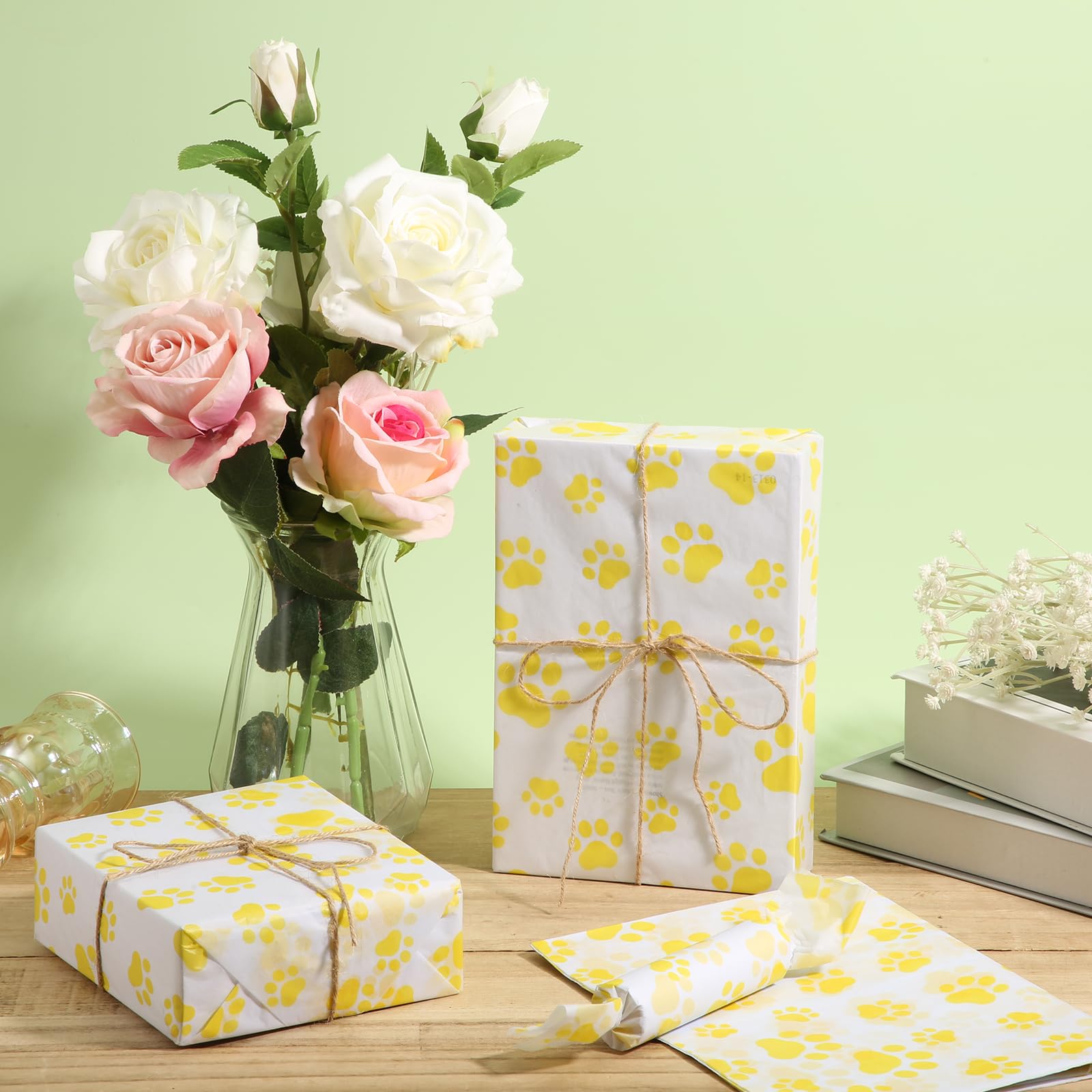 Wow, wie süß ist denn dieses Geschenkpapier! Mit 30 Blättern im Format 50x35cm hast du genug Material für alle deine Geschenkideen. Die niedlichen Hundepfoten-Motive auf weißem Hintergrund sind perfekt für alle Tierliebhaber und Hundefans. Aus hochwertigem Seidenpapier gefertigt, ist es recycelbar und reißt nicht so leicht ein. Egal ob für Geburtstage, Weihnachten, Hundetaufe oder einfach nur so - damit machst du jedes Geschenk zum Highlight! Einfach schneiden, falten und dein Präsent wird zum absoluten Hingucker. Auch super für Bastelprojekte, Partydekoration oder Geschenkkörbe. Deine Freunde mit Hunden werden aus dem Strahlen nicht mehr rauskommen! Perfekt für alle, die ihre Liebe zu Vierbeinern zeigen wollen - beim Auspacken gibt's garantiert ein Lächeln obendrauf!