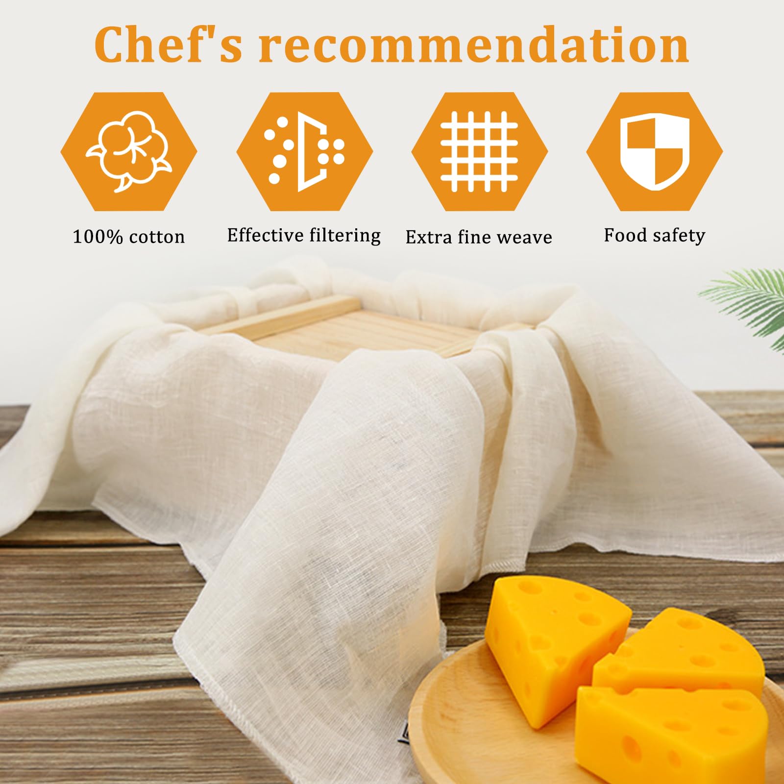 Küchen-Allrounder in Premium-Qualität! Dieses 3er-Set aus ungebleichten Baumwolltüchern ist ein Muss für jede Küche. Jedes Tuch misst 50x50cm und ist super vielseitig einsetzbar. Perfekt für die Käseherstellung, zum Filtern von Nussmilch, Klären von Suppen oder Aufbrühen von Tee. Die feine Webung filtert selbst feinste Partikel heraus, während die doppelte Saumkante das Ausfransen verhindert. Aus 100% naturbelassener Baumwolle - komplett ohne Chemie und hautfreundlich. Einfach nach Gebrauch bei 60°C in der Maschine waschen und an der Luft trocknen. Mit jeder Wäsche wird das Tuch nur weicher und geschmeidiger. Ob für professionelle Köche oder Hobby-Bastler in der Küche - diese Tücher machen jede Zubereitung zum Erlebnis und liefern perfekte Ergebnisse!