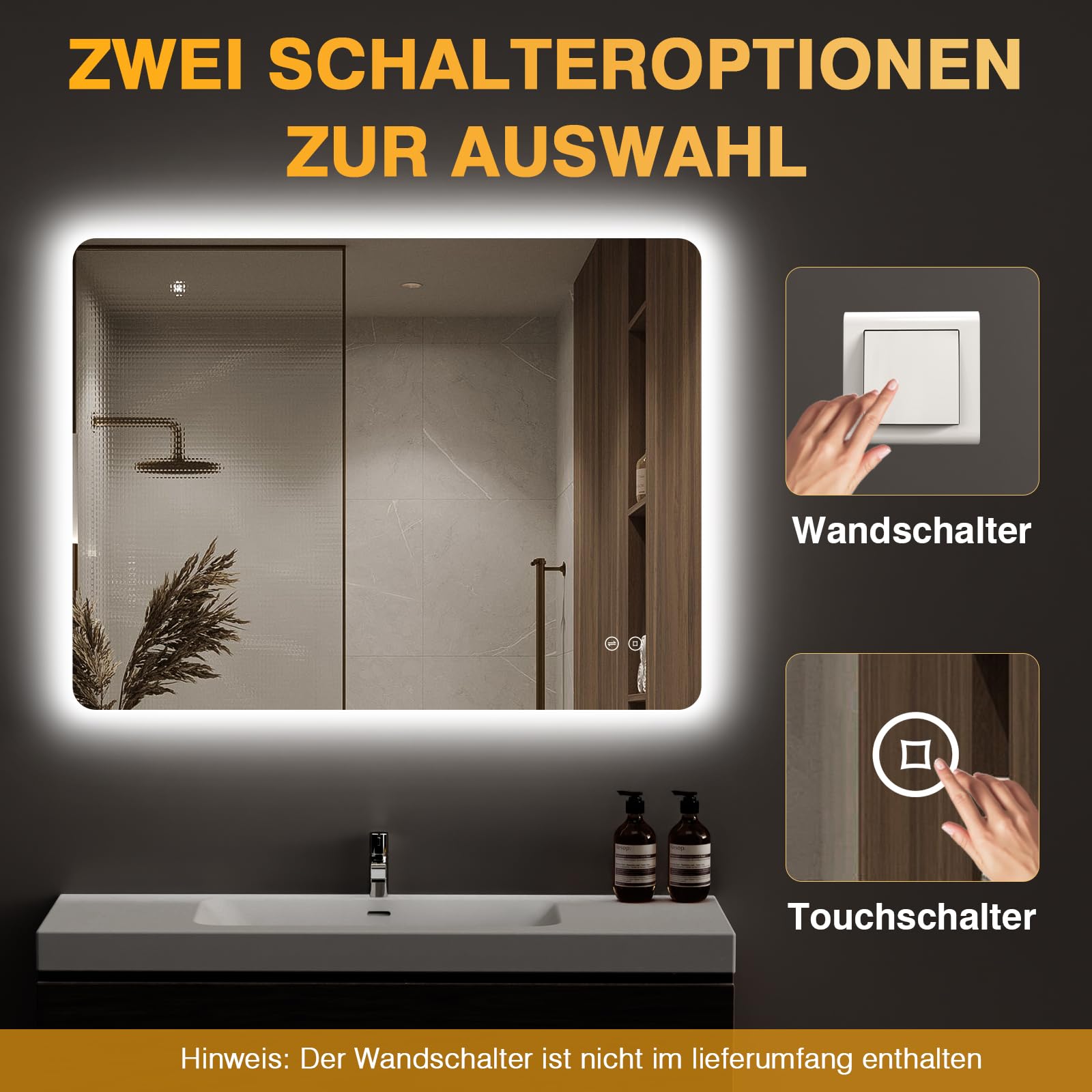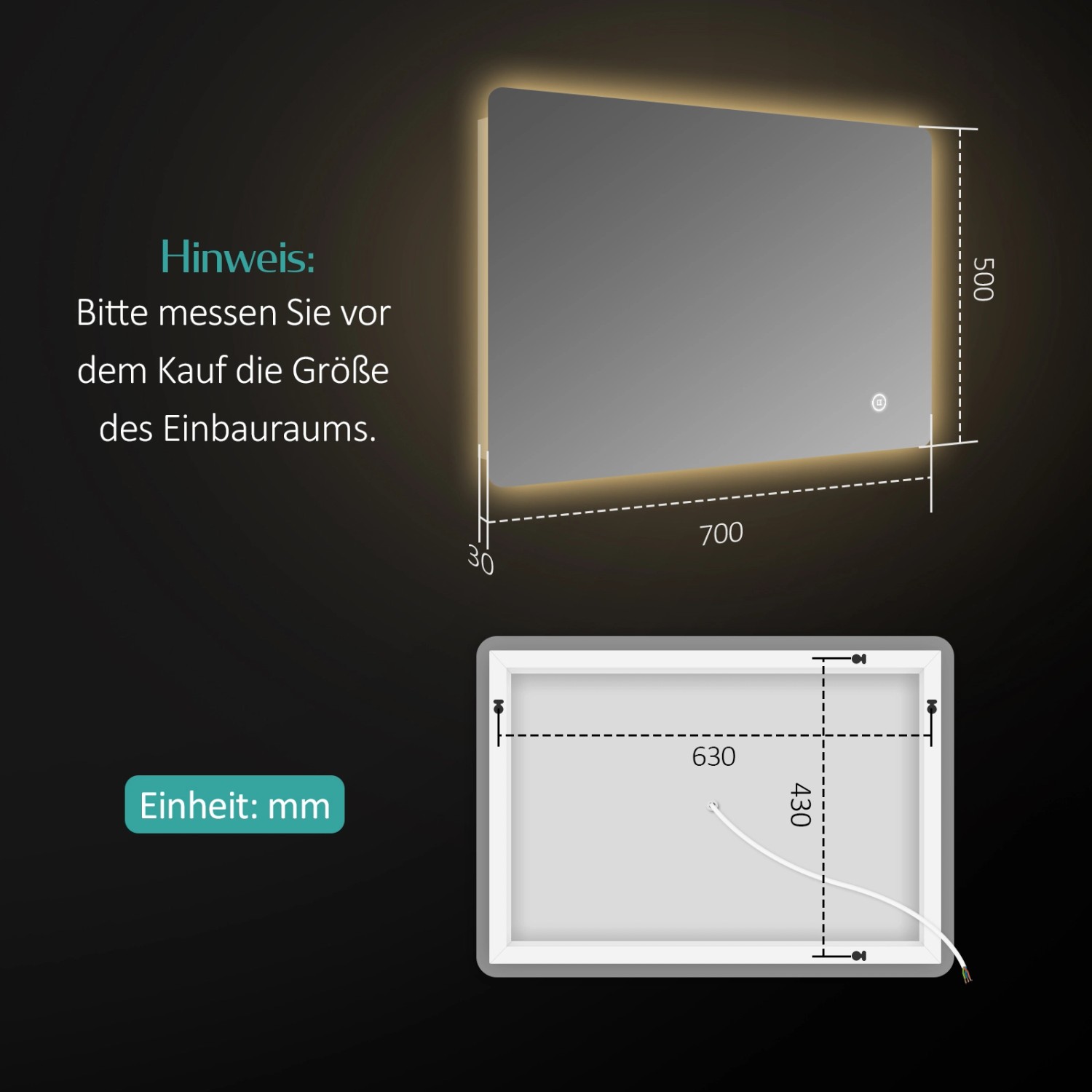 Dieser LED-Spiegel verwandelt dein Badezimmer in eine Wellness-Oase! Mit drei Lichtfarben (Warmweiß 3000K, Neutralweiß 4000K, Kaltweiß 6500K) findest du immer die perfekte Beleuchtung für jede Stimmung. Stufenlos dimmbar von 10% bis 100% - ob für entspanntes Abschminken oder perfektes Styling. Die Anti-Beschlag-Funktion sorgt dafür, dass der Spiegel nach dem Duschen immer klar bleibt - einfach den separaten Knopf drücken. IP44 Schutz gegen Spritzwasser - ideal für feuchte Badezimmer. Aus 5mm Sicherheitsglas mit Explosionsschutzfolie für maximale Sicherheit. Maße: 50x70cm oder 70x50cm - sowohl vertikal als auch horizontal montierbar. Mit Memory-Funktion, die deine Lieblingseinstellungen speichert. Einfache Installation mit allem nötigen Zubehör. Touch-Bedienung oder optional mit Wandschalter. Ein echter Game-Changer für dein morgendliches Routine - stylisch, funktional und einfach perfekt!