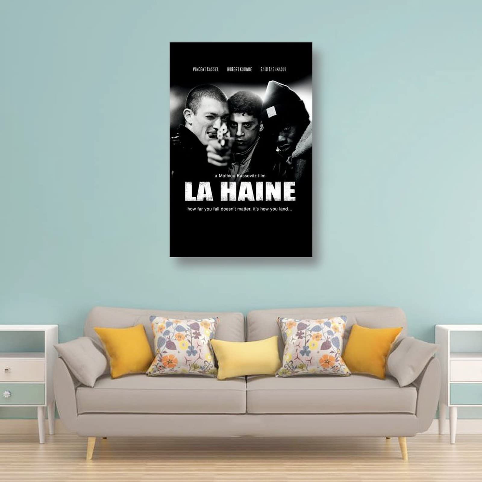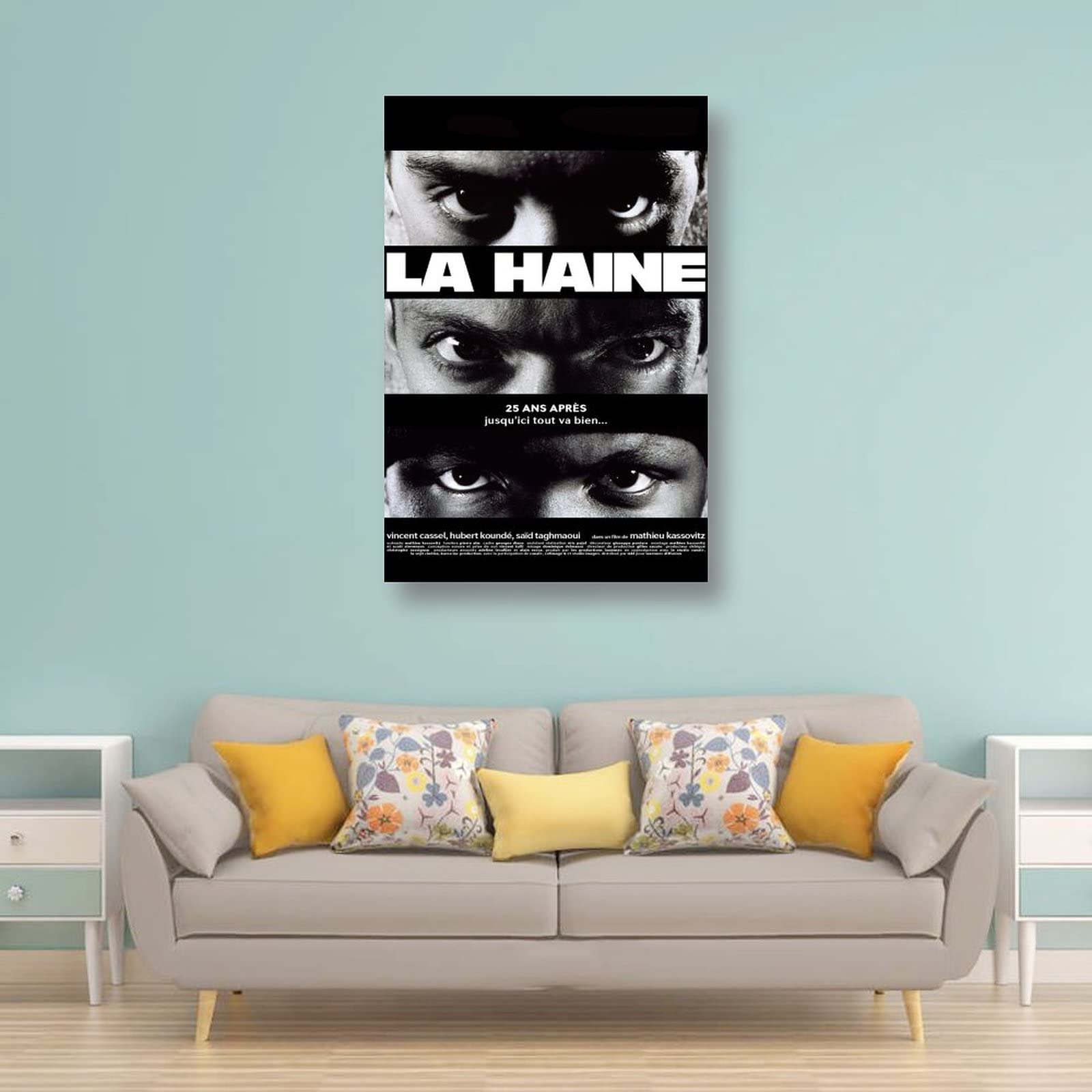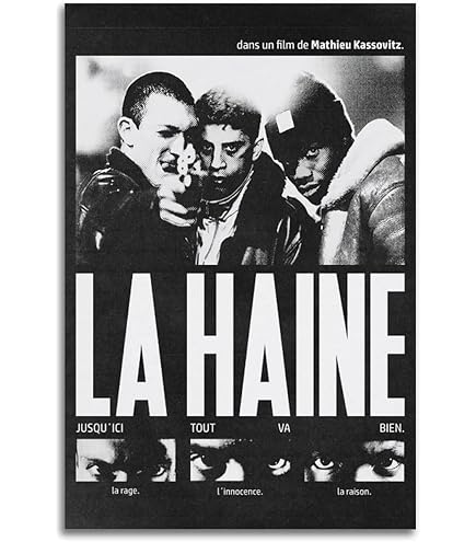 Cooles La Haine Poster im Vintage-Look! Dieser hochwertige Leinwand-Druck im Format 50x75 cm bringt französischen Film-Chic in deine vier Wände. Perfekt für Wohnzimmer, Schlafzimmer oder Büro - überall wo's stylisch sein soll. Mit scharfer, hochauflösender Druckqualität und lebendigen Farben. Jedes Poster wird individuell per Tintenstrahldruck hergestellt für optimale Ergebnisse. Ungerahmt geliefert - du kannst es ganz nach deinem Geschäft rahmen lassen. Ein echter Hingucker der Gespräche anregt und deine Wände in eine Galerie verwandelt. Einfach aufhängen und den besonderen Flair von La Haine genießen!