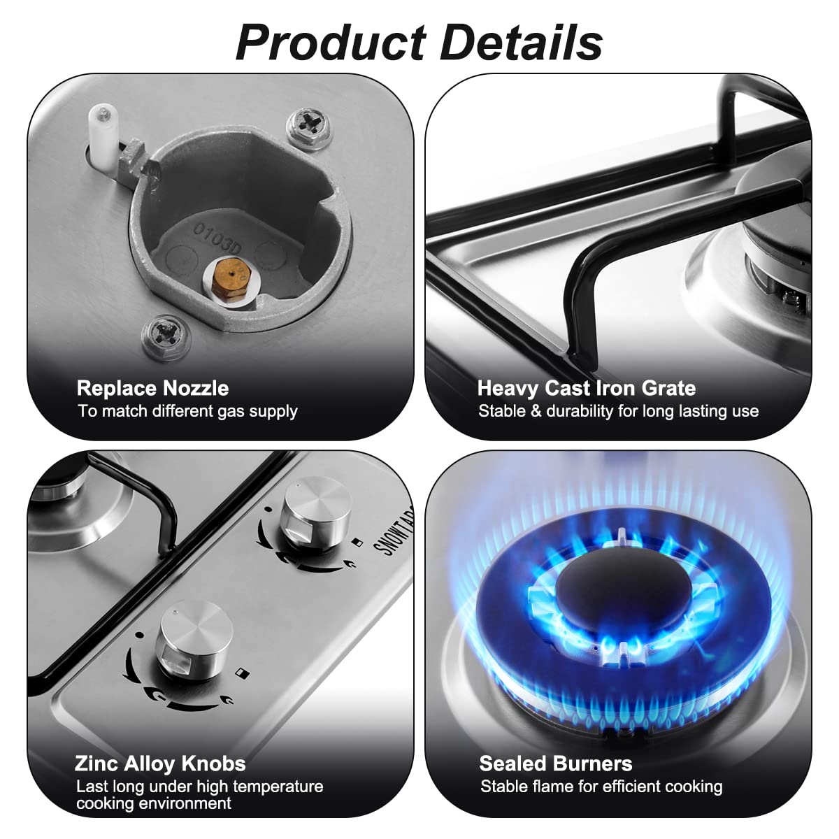Profikochen für unterwegs! Dieses kompakte 2-Flammen Gaskochfeld mit 51x31 cm ist der perfekte Begleiter für Camping, Balkon oder Gartenküche. Mit einem starken 3 kW Turbo-Brenner und einem 1,75 kW Brenner kannst du gleichzeitig kochen und warm halten. Das Edelstahl-Gehäuse ist spritzlackiert und die abnehmbaren Roste machen die Reinigung zum Kinderspiel. Die praktische Piezo-Zündung funktioniert ohne Batterien und der Flammen-Ausfallschutz sorgt für zusätzliche Sicherheit. Voreingestellt für Erdgas (NG), aber mit beiliegenden Düsen schnell auf Propan (LPG) umrüstbar. Der 1,5 m lange Gasschlauch und das Druckreduzierventil sind im Lieferumfang enthalten. Einfache Montage in Arbeitsplatten oder als Tischgerät. Mit nur 4,75 kg Gewicht ist es leicht zu transportieren und überall einsetzbar. Perfekt für Outdoor-Küchen, Campingplätze, Gartenpartys oder als Zweitherd in der Ferienwohnung. Hol dir dieses vielseitige Kochfeld und genieße kulinarische Freiheit wherever du bist - ob beim gemütlichen Grillabend oder beim abenteuerlichen Camping-Trip. Ein Kochfeld das wirklich alles kann!
