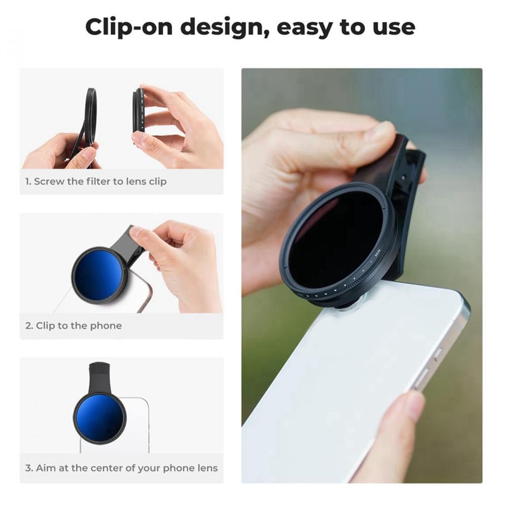 • Sirxlevcy Variabler ND Filter 52mm ND2-ND400 - Für Smartphone Kameras