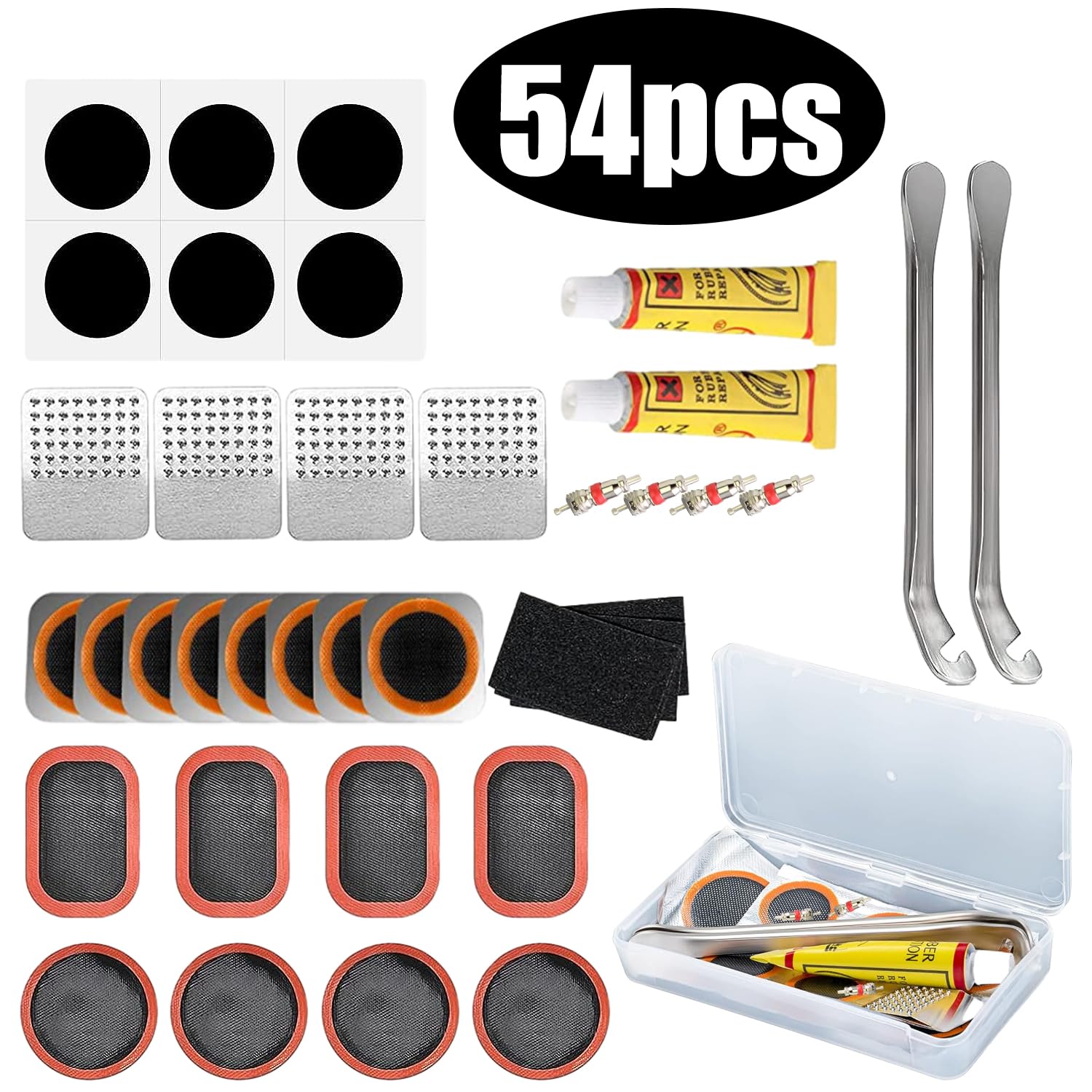 Platter Reifen? Kein Problem mit diesem 54-teiligen Flickzeug-Set! Egal ob du mit dem Fahrrad, Motorrad oder BMX unterwegs bist - hier findest du alles, was du für eine schnelle Reparatur brauchst. Im praktischen Aufbewahrungsbox sind 24 runde und 24 rechteckige Flicken enthalten, plus 2 Metallfeilen, 2 Reifenheber und 2 Gummikerne. Super praktisch: Die Flicken sind schon vormontiert - du brauchst also keinen extra Klebstoff! So geht's: Reifen mit dem Heber abhebeln, den Schlauch mit der Feile anrauen, Flicken aufdrücken und fest andrücken. Schon kannst du weiterfahren! Das Material ist hochwertiger Gummi mit guter Zugfestigkeit, der auch bei Beanspruchung hält. Übrigens: Das Set ist nicht nur für Fahrräder geeignet, sondern auch für Motorräder, Kinderwagen, Rollstühle und andere aufblasbare Gummiprodukte. Perfekt für die Werkstatt zu Hause oder als Notfall-Set für unterwegs. Kleiner Tipp: Bei sehr großen Löchern oder nasskaltem Wetter funktioniert's nicht optimal - aber für die meisten Standard-Pannen ist es die Rettung! Einfach in den Rucksack packen und beruhigt losfahren.