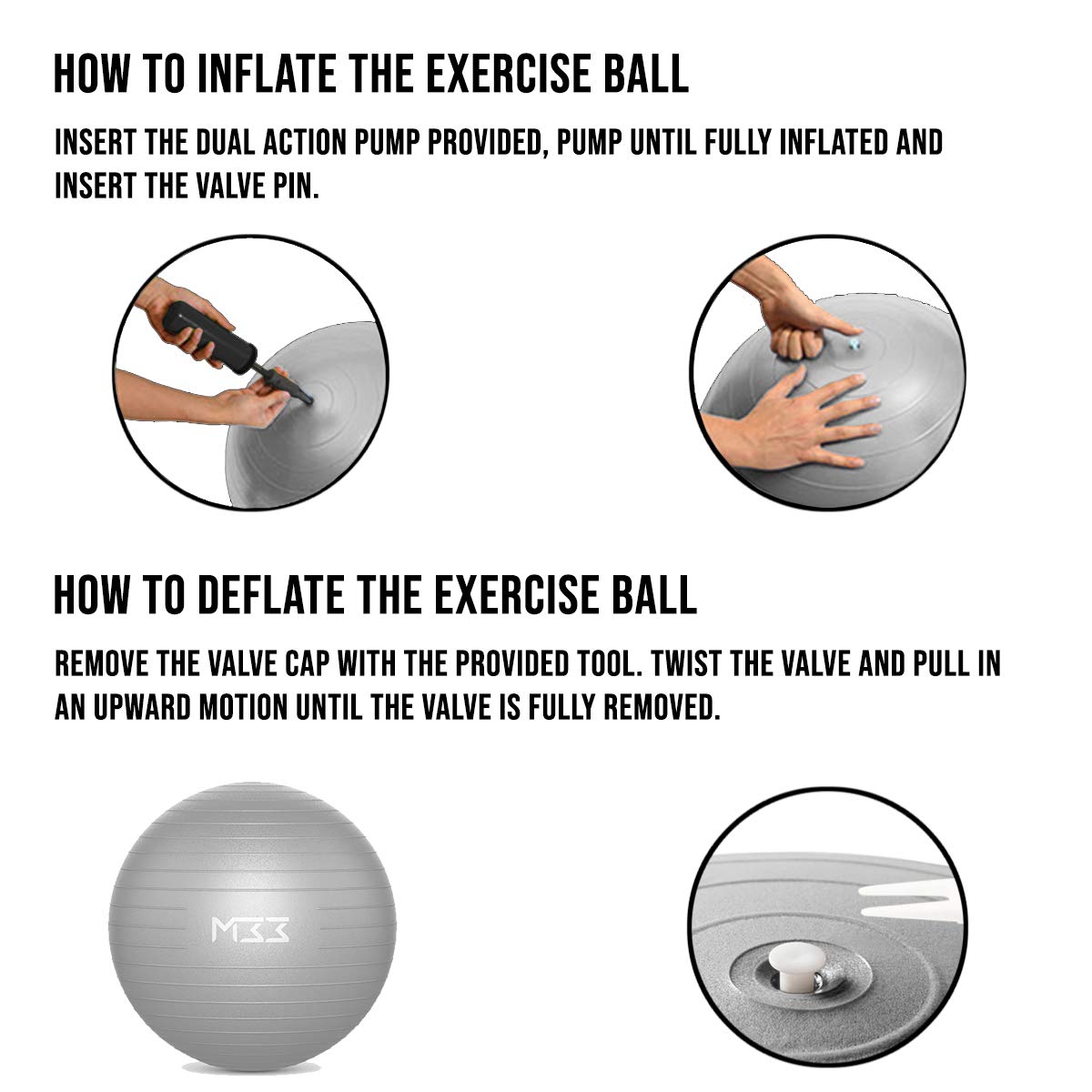 Im Lieferumfang ist eine Luftpumpe enthalten - super praktisch! Einfach aufblasen und loslegen. Ob fürs Home-Workout, die Schwangerschaftsgymnastik oder als aktiver Sitz im Homeoffice - dieser Ball ist ein echter Allrounder!