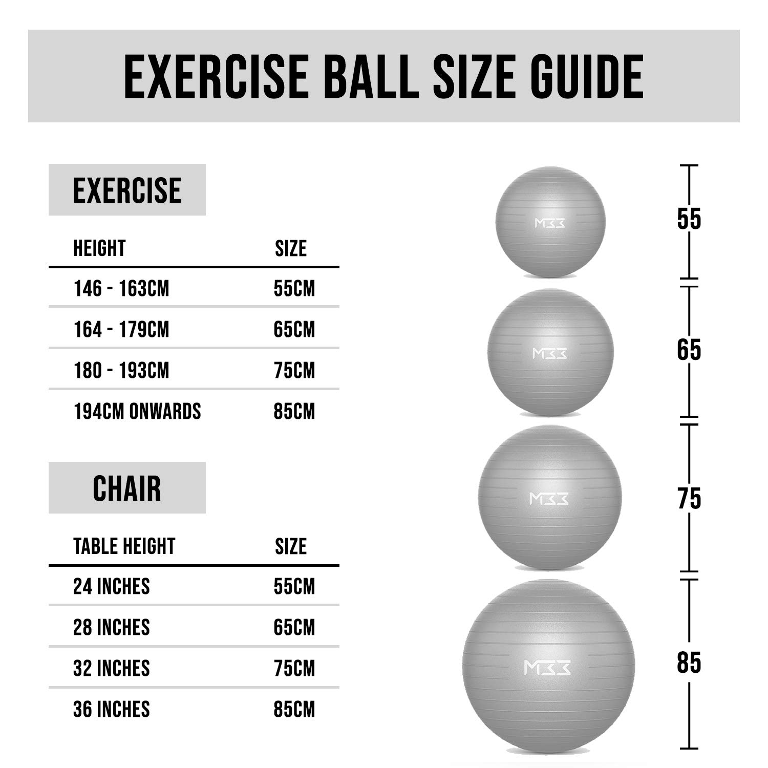 Erhältlich in 4 Größen von 55-85cm und 6 verschiedenen Farben - da ist für jeden was dabei! Der Ball ist aus hochwertigem Anti-Burst-PVC, das heißt er platzt nicht, sondern gibt langsam Luft ab wenn er beschädigt wird. Super sicher also!