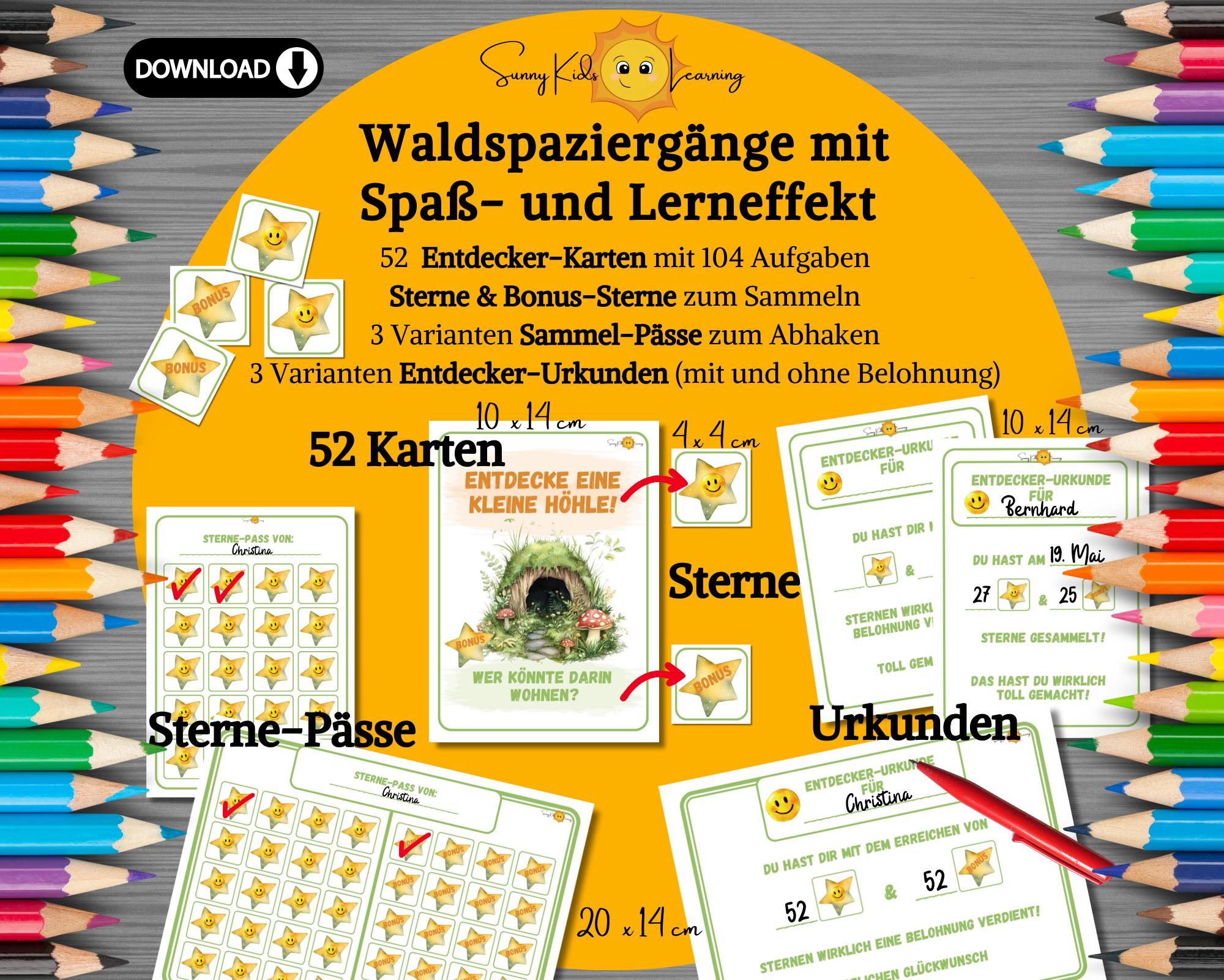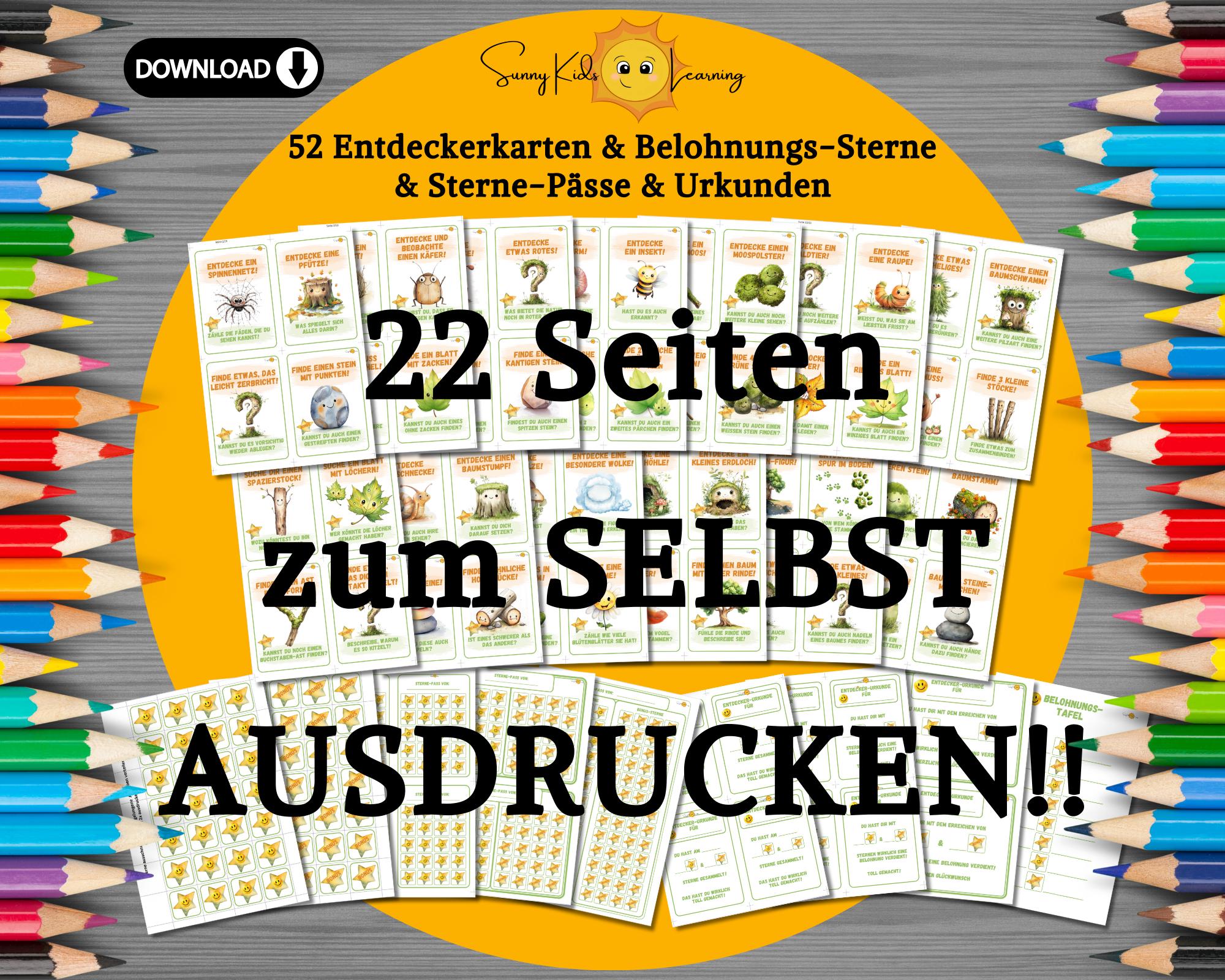 Perfekt für kleine Naturentdecker! Dieses Set mit 55 robusten Spielkarten bringt Kindern ab 5 Jahren die Natur näher - ganz ohne Bildschirm. Inspiriert von Montessori und Waldpädagogik fördern die Karten spielerisch die Beobachtungsgabe, Kreativität und emotionale Intelligenz. Die Karten sind richtig wetterfest und abwischbar - egal ob Regen oder Sonnenschein, sie halten was aus! Mit dabei: Ein Belohnungssystem mit Stickern und einer Drehscheibe, das die Kids motiviert aktiv mitzumachen. Super für Waldtage, Kita-Ausflüge, Grundschule oder einfach für den Familienausflug am Wochenende. Die Illustrationen sind total liebevoll gestaltet und das ganze Ding ist nachhaltig produziert. Egal ob im Kinderzimmer, Klassenzimmer oder unterwegs - hier wird Lernen zum Abenteuer! Ein wunderbares Geschenk für alle naturbegeisterten Kinder, das Generationen verbindet und einfach Spaß macht. Learning by doing - aber richtig cool!