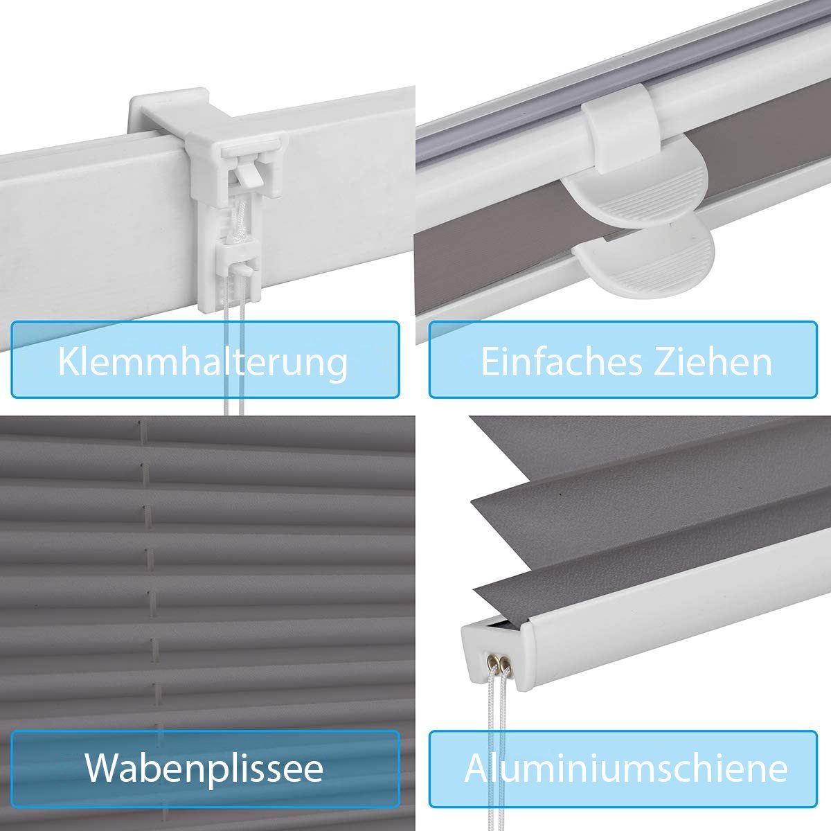 Kein Bohren nötig! Dieses Plissee klemmst du einfach an deinen Fensterrahmen - fertig. Maße: 55cm breit, 120cm hoch - perfekt für viele Standardfenster. Aus 137% Vliesstoff, blickdicht und sonnenschützend. Lässt sich von oben und unten bedienen - du bestimmst, wie viel Licht reinkommt. Mit 4 verstellbaren Klemmhalterungen - passt an die meisten Fenster. UV-Schutz inklusive - schont deine Möbel vor Ausbleichen. Einfach anbringen, kein Werkzeug nötig. Sieht modern aus und funktioniert super. Perfekt für Mieter oder alle, die nicht bohren wollen!