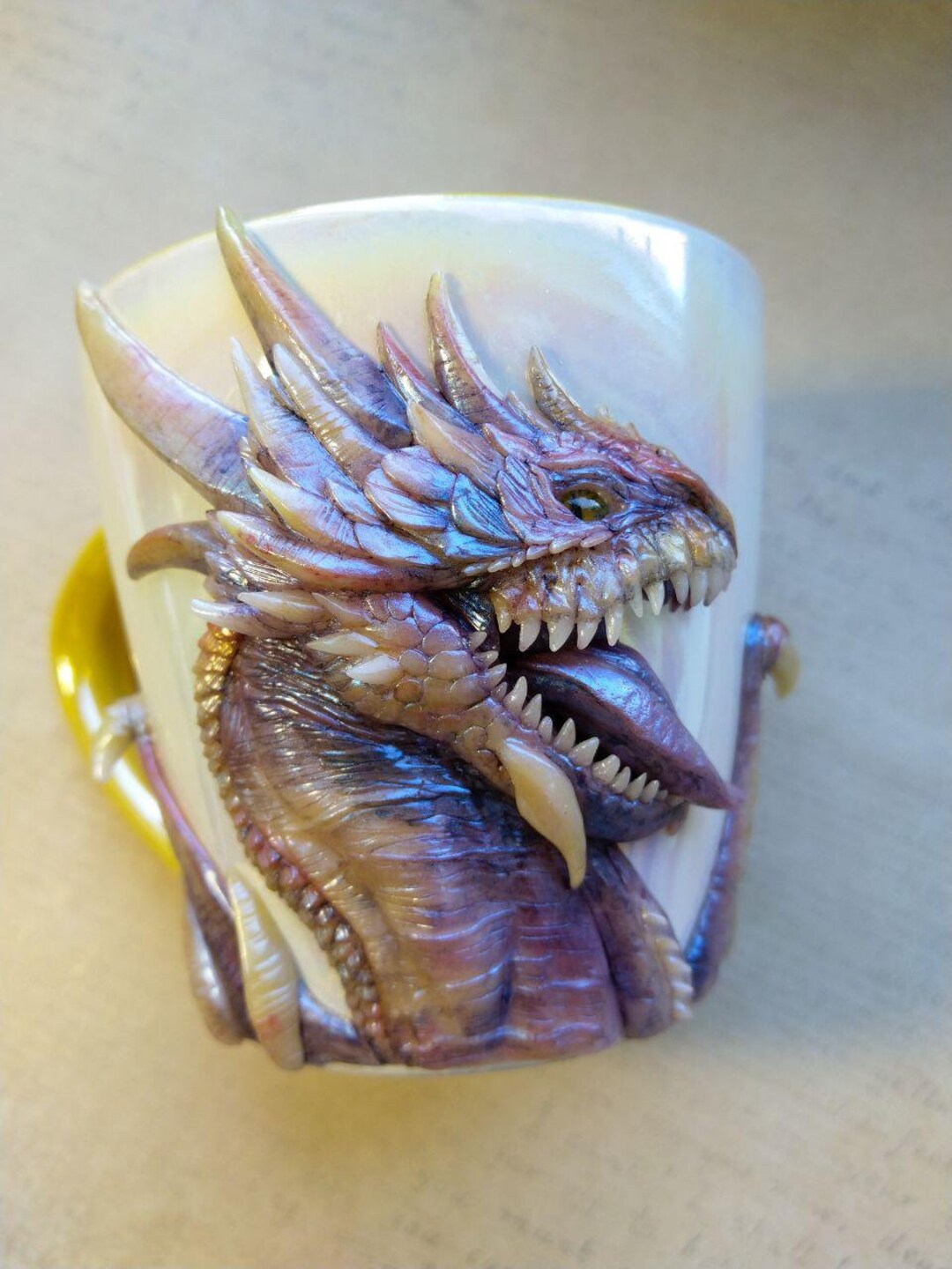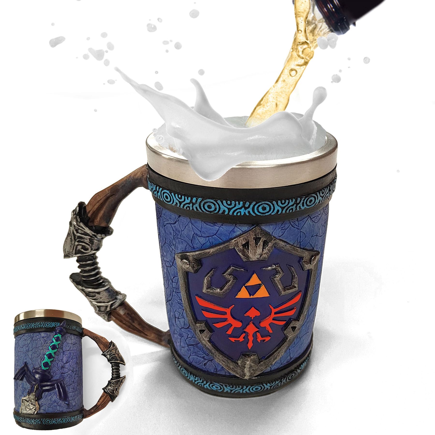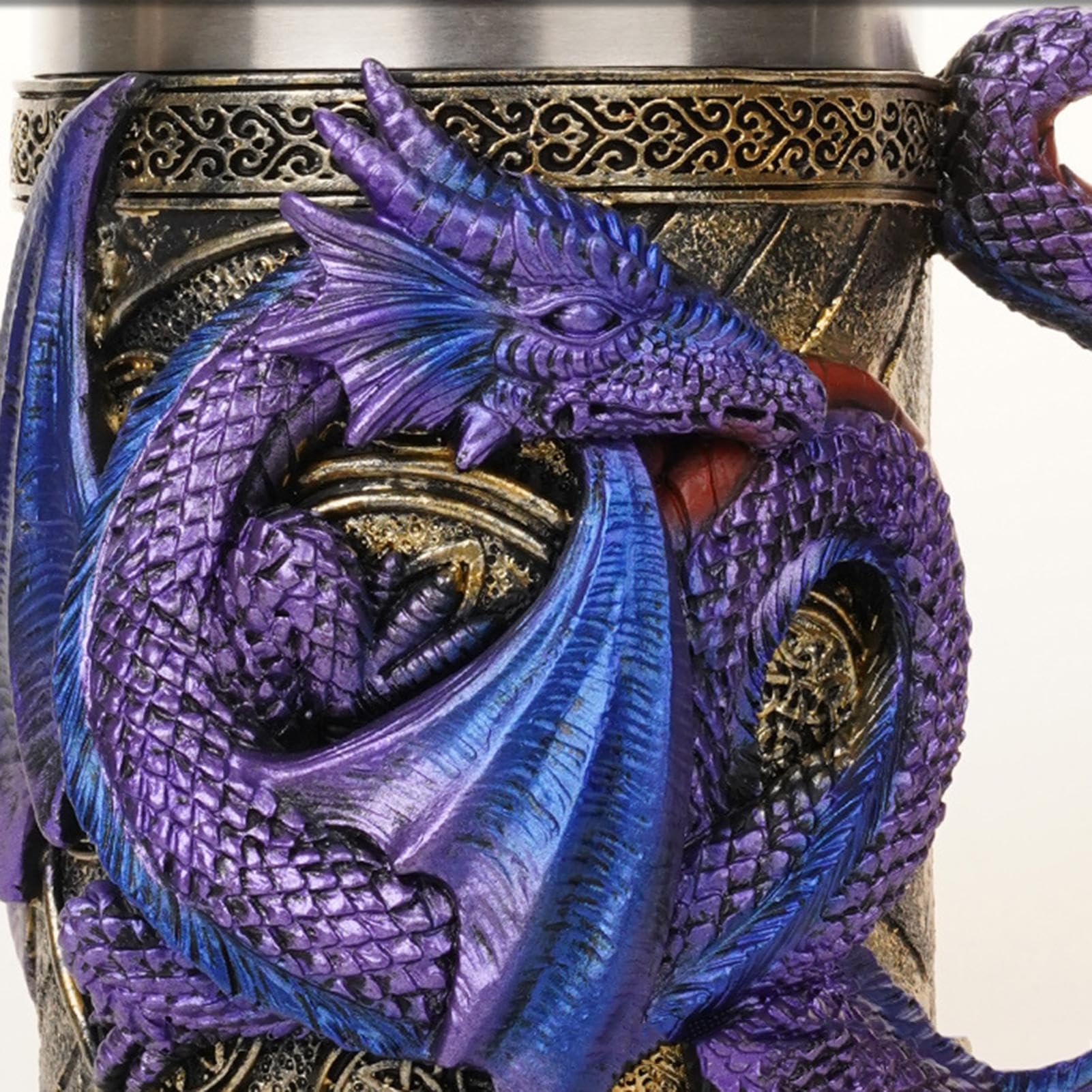Suchst du etwas Besonderes für deine Getränke? Dieser Drachen-Becher ist absolut epic! Das 3D-Drachenrelief sieht nicht nur cool aus, sondern du kannst den Drachenkörper sogar als Griff benutzen. Fühlt sich an, als würdest du einen echten Drachen zähmen! \\n\\nDer Becher hat innen eine Edelstahl-Einlage (304er Qualität), die deine Getränke lange heiß oder kalt hält. Mit 568ml Fassungsvermögen ist er perfekt für Bier, Kaffee oder Tee. \\n\\n• 568ml Fassungsvermögen\\n• Innen aus hygienischem Edelstahl 304\\n• Außen aus hochwertigem Harz\\n• 6 Farben zur Auswahl\\n• C-förmiger Griff für bequemes Halten\\n\\nIch nutze meinen nicht nur zum Trinken - er steht auch super als Deko-Stück im Regal! Perfekt für Mottopartys, Spieleabende oder einfach als täglicher Begleiter. Der Becher ist überraschend robust und leicht zu reinigen. Egal ob du Fantasy-Fan bist oder einfach nur stylische Accessoires magst - dieses Teil ist ein absoluter Hingucker!