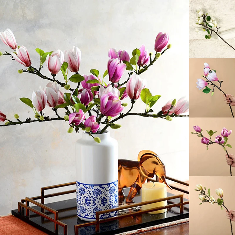 Diese künstlichen Magnolienzweige sehen täuschend echt aus! Mit 56 cm Länge sind sie perfekt für Vasen, Tischdekoration oder als grüner Akzent in jedem Raum. Das hochwertige Kunststoffmaterial ist flexibel und hält seine Form - kein Verblassen, kein Welken! Die lebensechten Details auf Blättern und Blüten täuschen selbst aus der Nähe. Besonders praktisch: Kein Gießen, kein Düngen, kein Schnitt notwendig - einfach hinstellen und jahrelang Freude haben. Perfekt für Zuhause, Büro oder als Fotorequisite. Die natürliche grüne Farbe bringt Frische in jeden Raum, auch an den dunkelsten Wintertagen. Einfach in die Vase stellen, arrangieren und sich über die immergrüne Pracht freuen - ohne jeglichen Pflegeaufwand!