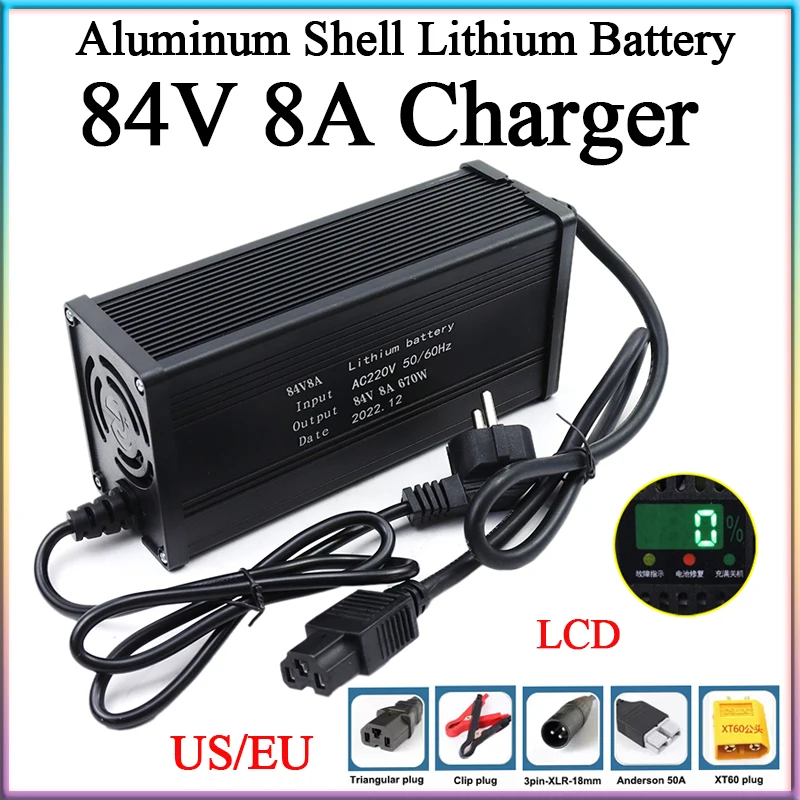 Suchst du ein sicheres und effizientes Ladegerät für deine 72V Lithiumbatterien? Dieses QDD 84V 5A Ladegerät ist die perfekte Wahl für zuverlässiges und schnelles Aufladen! Mit seinem intelligenten Dreiphasen-Ladesystem (Konstantstrom - Konstantspannung - Erhaltungsladung) sorgt es für eine optimale und schonende Ladung deiner Akkus. Das robuste Aluminiumgehäuse ist nicht nur formschön, sondern auch extrem langlebig. Der integrierte Kühllüfter sorgt für eine effektive Wärmeableitung während des Ladevorgangs - so bleibt das Gerät auch bei längeren Ladezeiten kühl und leistungsstark. Die LED-Anzeige zeigt dir jederzeit den Ladezustand an: Rot während des Ladens, blinkend wenn der Akku fast voll ist und grün bei vollständiger Ladung. Das Ladegerät verfügt über umfassende Schutzfunktionen including Überspannungsschutz, Überstromschutz, Kurzschlussschutz und Verpolungsschutz - dein Akku ist also in besten Händen! Mit einem Wirkungsgrad von ≥85% ist das Gerät nicht nur effizient, sondern auch energiesparend. Der Standard-DC-Stecker ist ein GX16 1+3-Stecker und im Lieferumfang sind ein EU-Standard-Netzkabel und zwei Ersatzsicherungen enthalten. Einfach anschließen und dein Akku wird sicher und zuverlässig geladen!