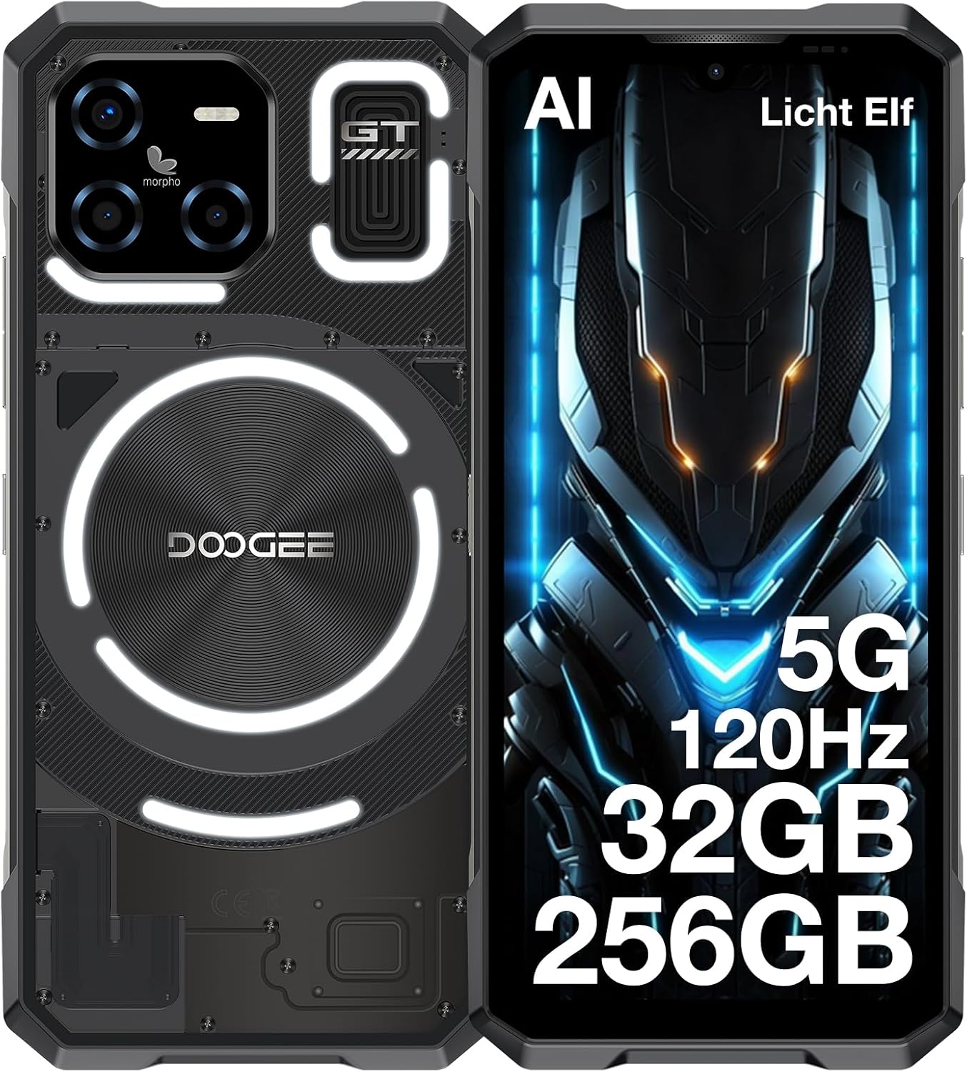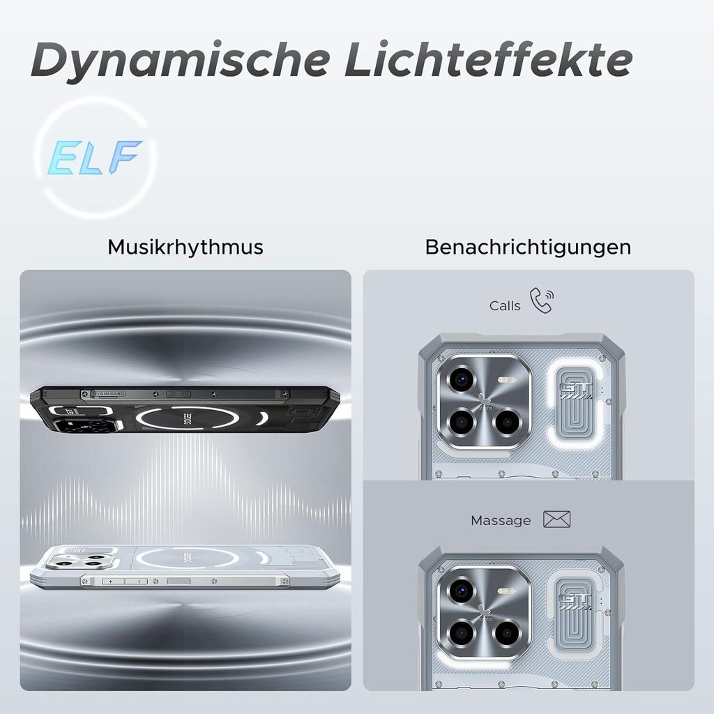 Dieses DOOGEE Blade GT ist kein gewöhnliches Smartphone! Mit spektakulären LED-Lichteffekten an der Seite, die zu Musik, Anrufen oder deiner Stimmung passen. Das 6,72 Zoll Display mit 120Hz zeigt alles gestochen scharf. Der Dimensity 7050 Prozessor und 32GB RAM sorgen für Power pur. Mit 256GB Speicher plus 2TB erweiterbar hast du Platz ohne Ende. Die 48MP Triple-Kamera macht super Fotos und 4K Videos. Der riesige 5500mAh Akku hält ewig durch. Und das Beste: Es ist wasserdicht (IP68/IP69K) und stoßfest - perfekt für Outdoor-Abenteuer! Mit Fingerabdruck-Sensor, Gesichtserkennung und NFC. Android 14 ist schon vorinstalliert. Ob beim Wandern, Arbeiten oder Feiern - dieses Handy fällt auf und hält was aus!