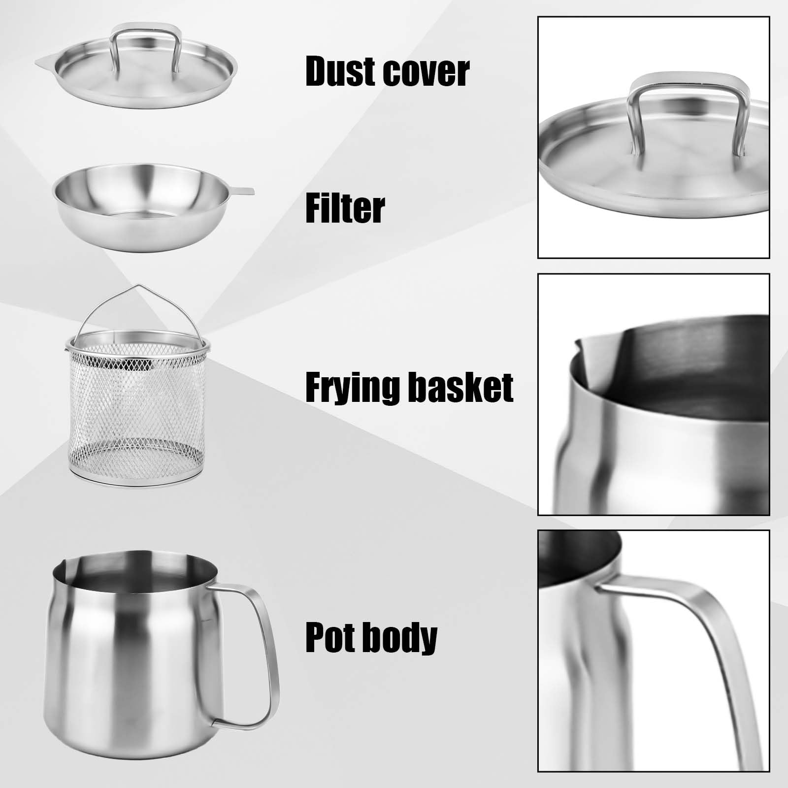 Perfekt für Outdoor-Abenteuer und die heimische Küche! Dieser rockible Ölfiltertopf aus robustem Edelstahl hält so einiges aus. Mit stolzen 5 Litern Fassungsvermögen ist er groß genug für Familienessen oder Grillpartys. Das praktische Sieb ermöglicht dir, Fett abzugießen oder Lebensmittel abzutropfen - super praktisch beim Frittieren oder für Suppen. Der passende Deckel hält alles sauber und warm, egal ob beim Camping oder zu Hause. Du kannst den Topf als normalen Kochtopf nutzen oder als Hängetopf über dem Lagerfeuer aufhängen. Vielseitig einsetzbar für Kochen, Dünsten, Braten oder einfach als Rührschüssel. Das Edelstahl-Material ist langlebig, leicht zu reinigen und hält auch rauem Outdoor-Einsatz stand. Ob beim Wandern, Angeln oder im Garten - dieser Topf ist dein zuverlässiger Begleiter für jedes Koch-Abenteuer!