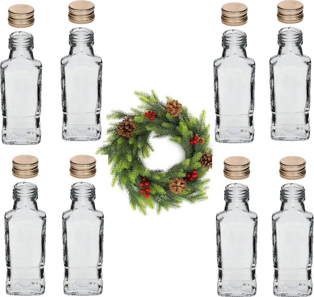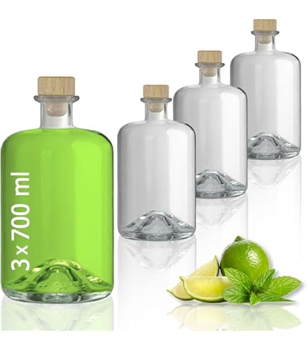 Wunderschöne Glasflaschen für deine eigenen Kreationen! Dieses 8er-Set mit je 0,5L Fassungsvermögen ist perfekt für selbstgemachte Liköre, Öle, Essige oder Säfte. Aus hochwertigem italienischem Glas, lebensmittelecht und wiederverwendbar. Die elegante Form macht sich super in der Küche, als Geschenk oder auf dem Festtisch. Einfach befüllen, etikettieren und verschenken - Freunde und Familie werden begeistert sein! Leicht zu reinigen, einfach mit warmem Wasser und etwas Desinfektionsmittel spülen. Umweltfreundliche Alternative zu Plastik, und sieht dazu noch viel schöner aus.