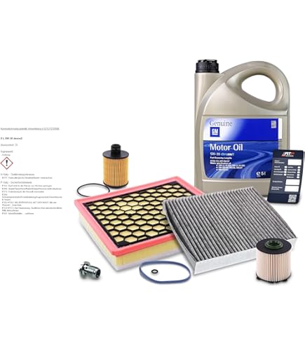 Steht bei deinem Opel Insignia A 2.0 CDTI die nächste Inspektion an? Dieses Komplett-Set macht's dir leicht! Enthalten ist alles, was du für einen Ölwechsel brauchst: 5L 5W-30 Motoröl nach Dexos 2 Standard, Ölfilter mit Dichtung, Luftfilter, Innenraumfilter mit Aktivkohle und eine neue Verschlussschraube für die Ölwanne (M18x1.5, SW13). Das vollsynthetische Motoröl bietet optimalen Motorschutz und Kraftstoffersparnis - und ist sogar rückwärtskompatibel für ältere Fahrzeuge. Bevor du bestellst, prüf bitte mit AmazonConfirmedFit und deiner HSN/TSN Nummer aus dem Fahrzeugschein, ob das Paket wirklich zu deinem Insignia passt. So sparst du dir die lästige Einzelteile-Suche und hast alles aus einer Hand. Ob für die Werkstatt um die Ecke oder wenn du den Ölwechsel selbst machen willst - dieses Set ist perfekt zusammengestellt. Qualität von BandelOne, auf die du dich verlassen kannst. Mach deine Inspektion zum Kinderspiel!