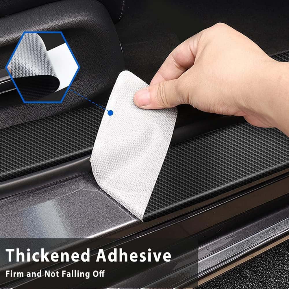 Die Aufkleber aus hochwertigem Carbon-Material sind in verschiedenen Größen erhältlich (40cm, 60cm, 90cm) und passen sich perfekt den Konturen deines Fahrzeugs an. Einfach die Türschwelle gründlich reinigen, Schutzfolie abziehen und aufkleben - fertig!