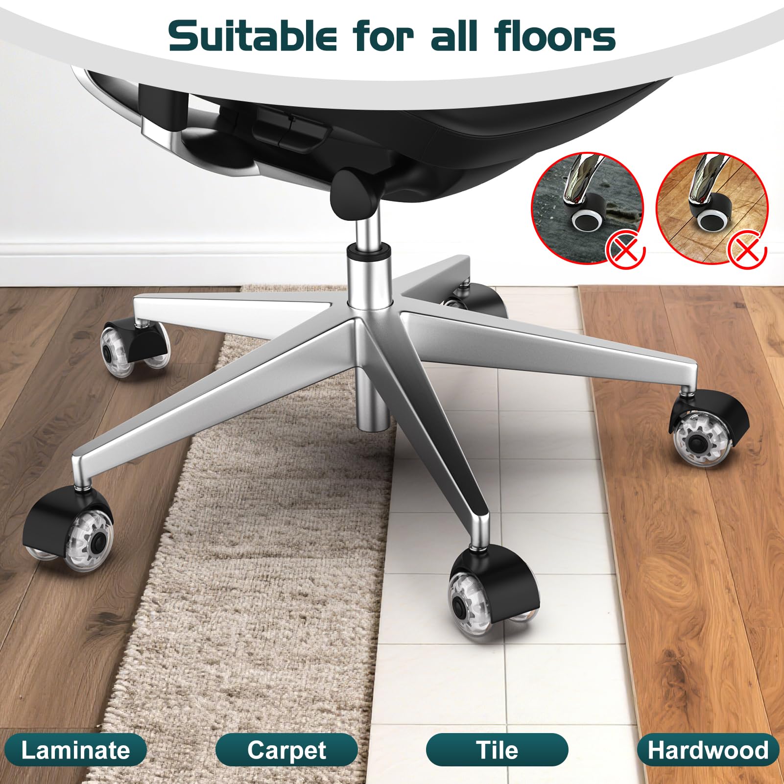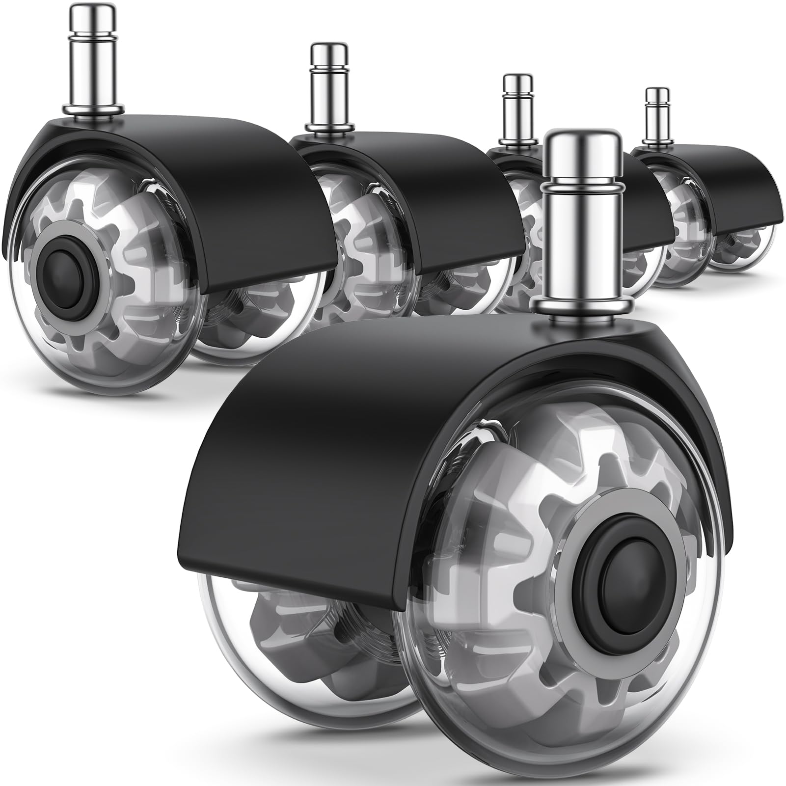 Schluss mit lauten Rollen und zerkratzten Böden! Diese super leisen Gummirollen verwandeln deinen Bürostuhl in einen leisen Gleiter. Mit den Maßen 10x22 mm passen sie für die meisten Büro-, Gaming- und Esszimmerstühle. Das 5-teilige Set trägt bis zu 300 kg und die 360°-Drehung gibt dir maximale Bewegungsfreiheit. Aus weichem Polyurethan schonen sie deine Böden - ob Laminat, Parkett oder Fliesen. Einfache Installation ohne Werkzeug: Alte Rollen rausziehen, neue reinstecken - fertig! Perfekt für Homeoffice, Büro oder Werkstatt. Endlich Ruhe und geschützte Böden!
