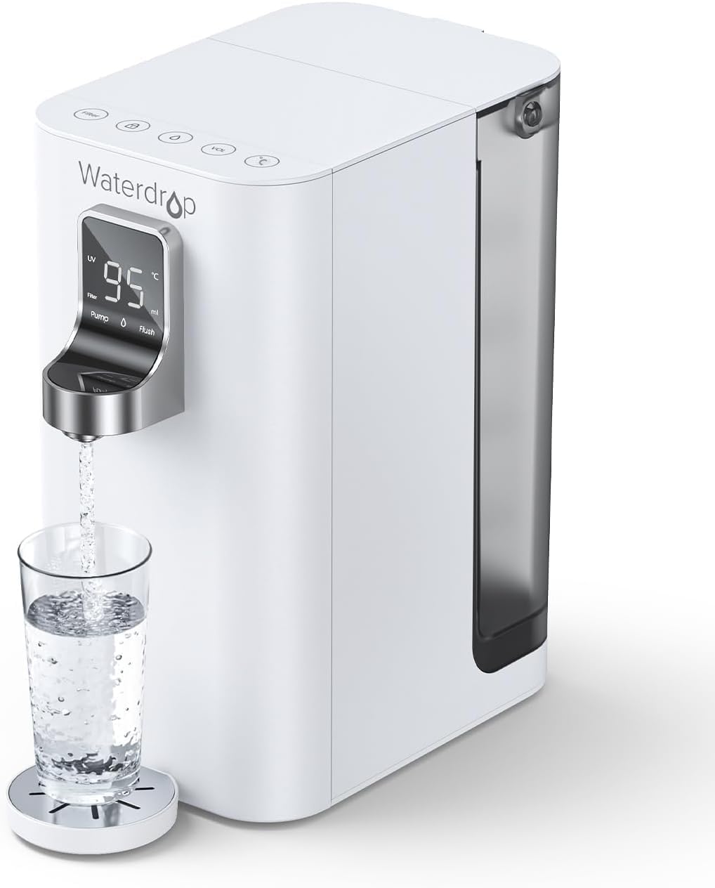 Schluss mit Kistenschleppen! Der SPRUDELUX PRO TOUCH ist der absolute Game-Changer für deine Küche. 5 Funktionen in einem Gerät: Wasserfilter, Sprudler, Kühler, Kocher und UV-Sterilisator - was will man mehr? Auf Knopfdruck bekommst du vier Wasserarten: stilles Wasser (kalt oder Raumtemperatur), heißes Wasser bis 95°C in nur 3 Sekunden und gekühltes Sprudelwasser ab 6°C. Die 5-fache Filterung mit Umkehrosmose entfernt Schadstoffe, Schwermetalle, Medikamentenrückstände, Mikroplastik und mehr. Die UV-Desinfektion sorgt für keimfreies Wasser ohne Chemie. Super flexibel: Entweder Festanschluss an die Wasserleitung oder mobil mit 5-Liter-Tank - perfekt für Mieter oder Büros. Mit 430x220x467mm kompakt und platzsparend. Energiesparfunktion, Touchdisplay mit Filterlebensdauer-Anzeige und nachhaltig - kein Plastikmüll mehr! Einfach das ultimative All-in-One-Gerät für perfektes Wasser jederzeit.